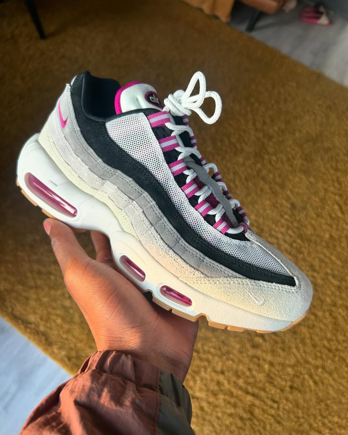 • Pink accents on the eyelets, heel and Air units