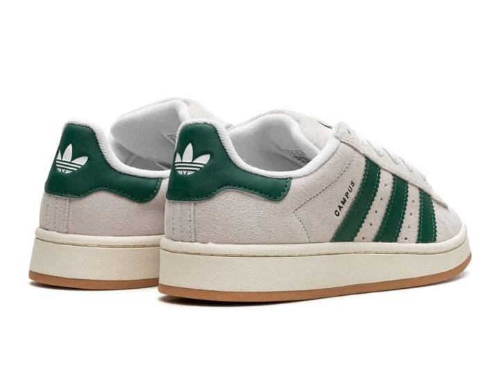 The adidas Campus 00s Crystal White Dark Green is a fresh nod to early 2000s street style — and it shows. This sneaker combines the raw skate vibes of yesteryear with a clean, contemporary finish. The suede upper in crystal white feels luxurious, while the contrasting dark green 3-Stripes and heel tab provide a clean, OG look.