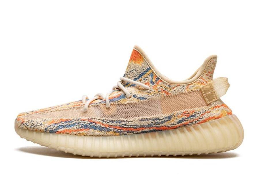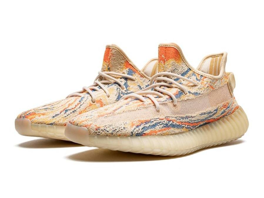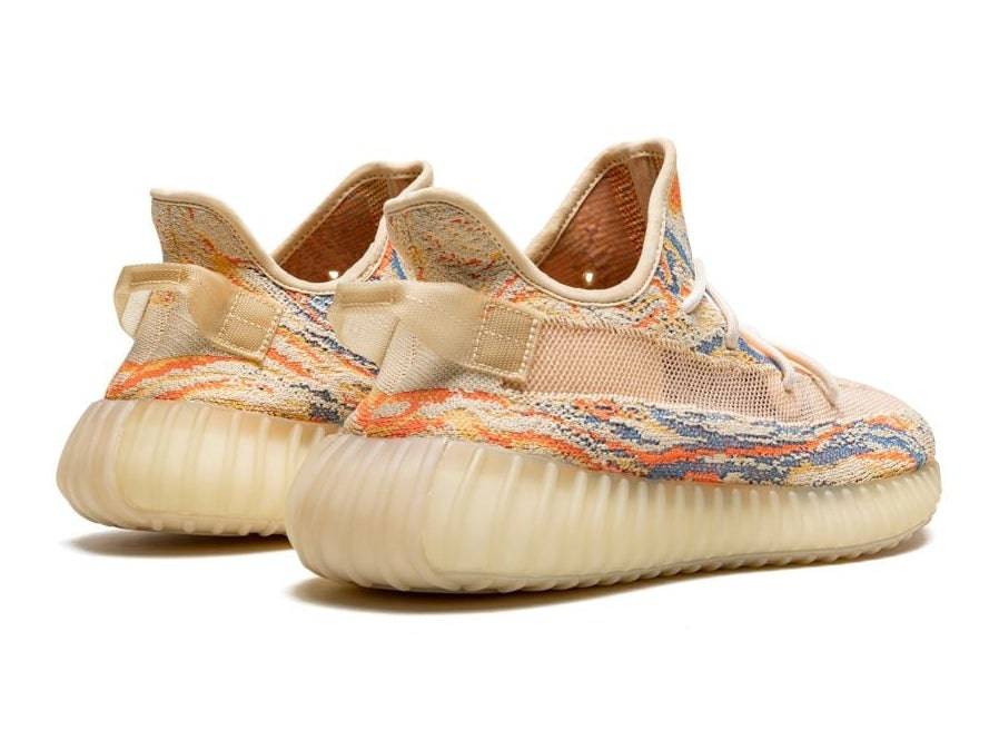 The adidas Yeezy Boost 350 V2 MX Oat is anything but basic. Featuring a striking mix of colors — orange, blue, beige, and cream — this release is sure to catch the eye. The semi-sheer Primeknit upper is packed with character, creating a unique, vibrant look that makes no two pairs exactly alike.