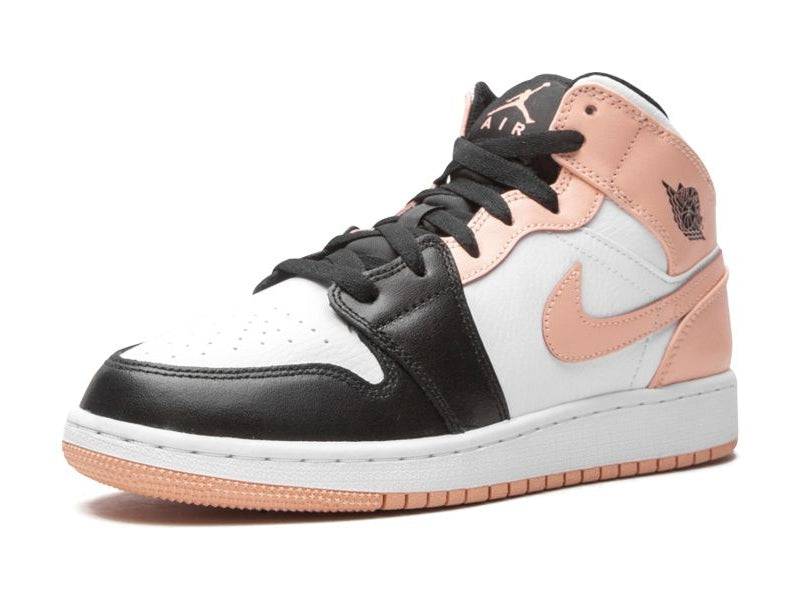 This mid-top iteration of the iconic Air Jordan 1 stays true to its basketball heritage, but gets a fresh and modern twist with a unique colorway. The upper is constructed from premium leather that is not only durable but also looks luxurious. Black leather overlays provide a stylish contrast to the white toebox and midfoot, while soft pink on the Swoosh, heel and ankle collar provides a subtle pop.
