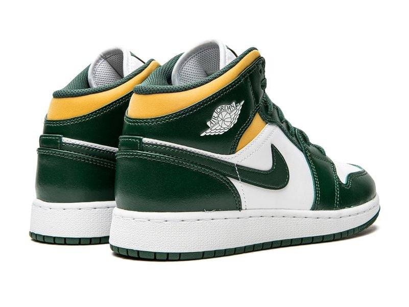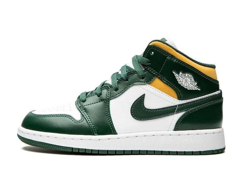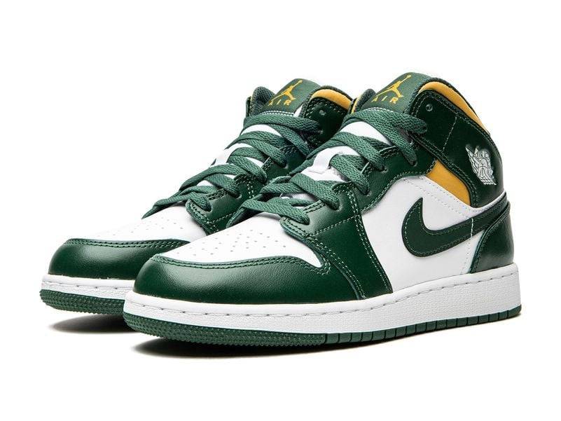 The Air Jordan 1 Mid Sonic is a true eye-catcher for those looking to freshen up their sneaker rotation. With its striking mix of dark green, white and gold yellow, this colorway strongly recalls vintage varsity vibes and American college culture. This silhouette stays true to the roots of the iconic Air Jordan 1, but strikes the perfect balance between street style and casual finesse.