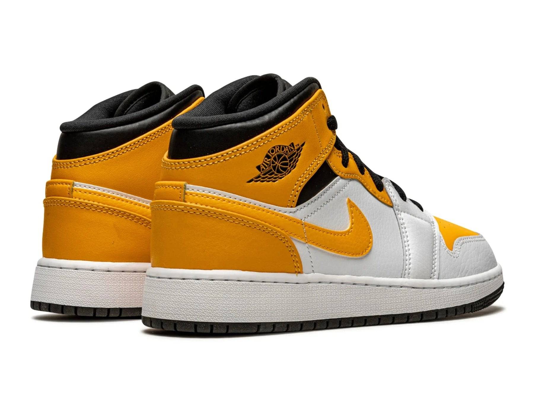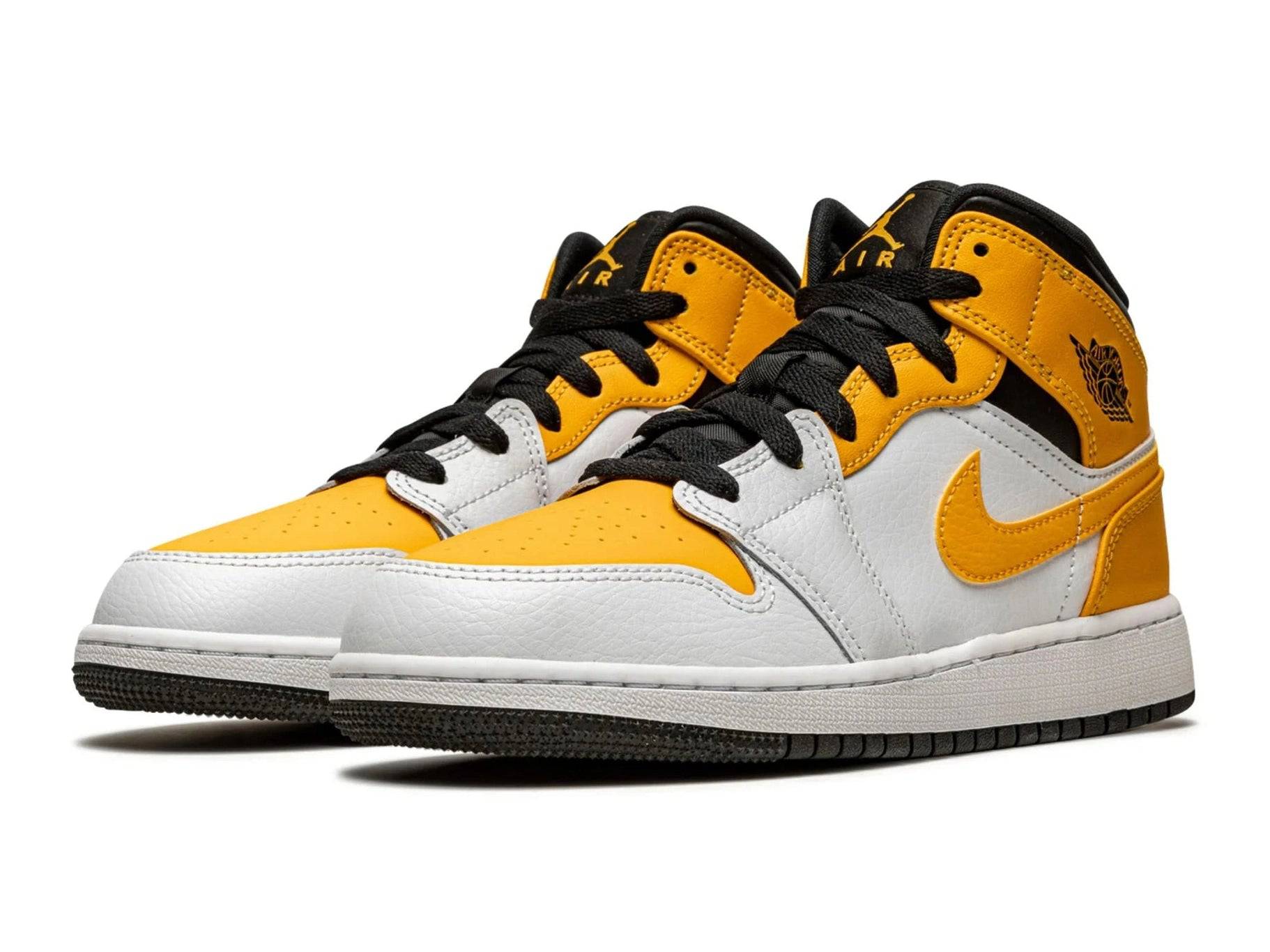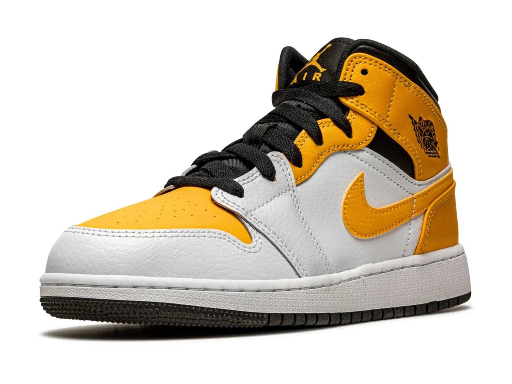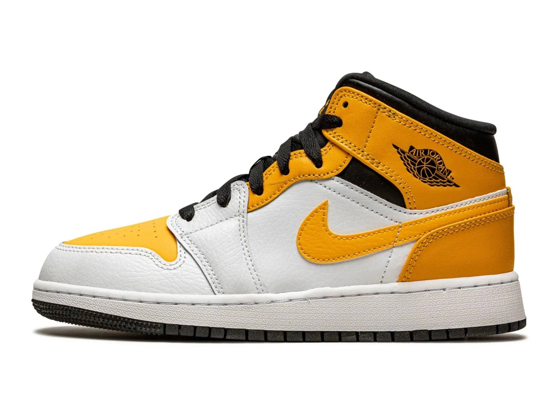 The Air Jordan 1 Mid White University Gold combines classic Jordan vibes with a fresh, sunny twist. This mid-top variant is based on the DNA of the iconic Jordan 1, but with an update that is street-ready and summer-proof. The combination of bright white and striking university gold makes this sneaker a real eye-catcher, while the black on the laces and ankle collar provides contrast and depth.