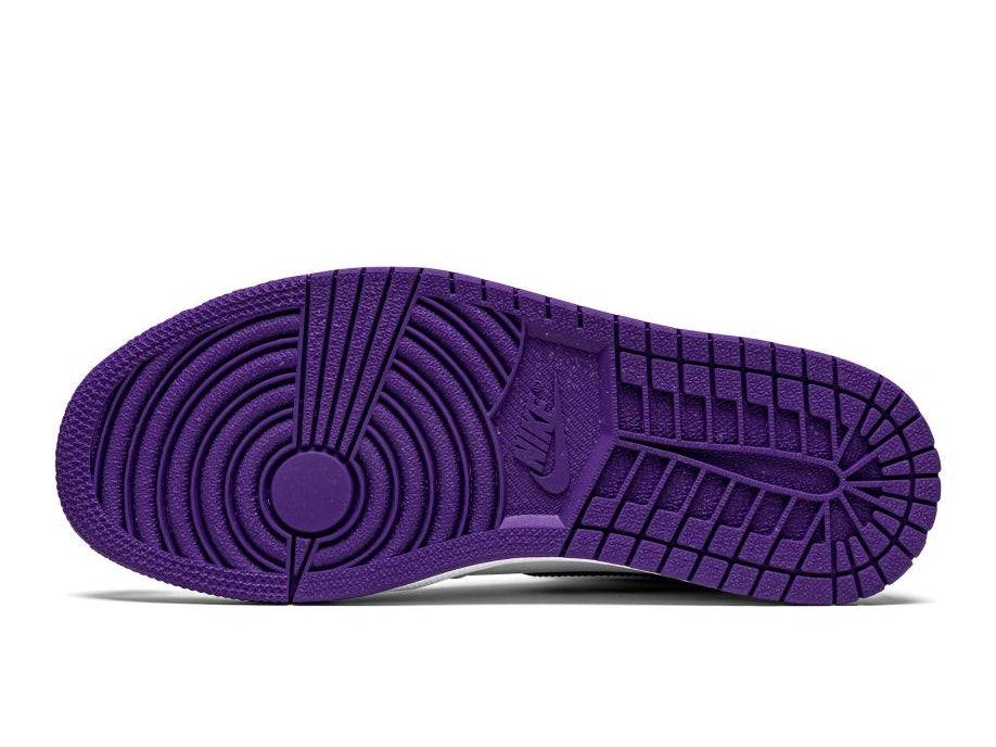 The upper is constructed in premium white leather with a premium texture, while the deep purple of the Swoosh, heel and outsole add extra contrast and character. The classic Wings logo on the ankle completes the silhouette and provides that unmistakable Air Jordan 1 High vibe that sneakerheads worldwide love.