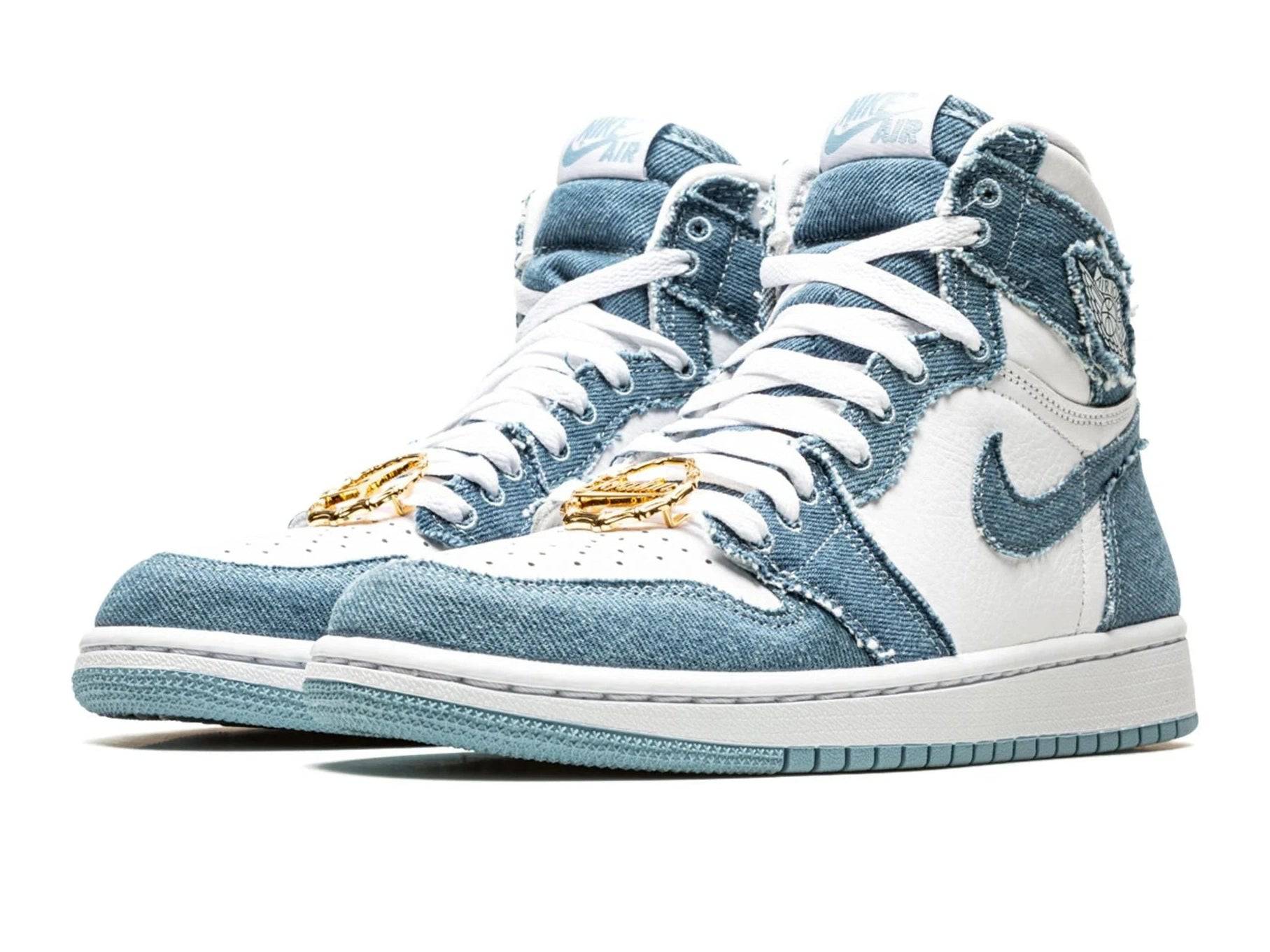 The Air Jordan 1 Retro High OG Denim shows how classic basketball vibes can effortlessly merge with streetwear flair. This striking iteration combines a clean white leather base with washed denim overlays in light blue – an unusual, yet awesome twist on the OG Jordan 1 silhouette.