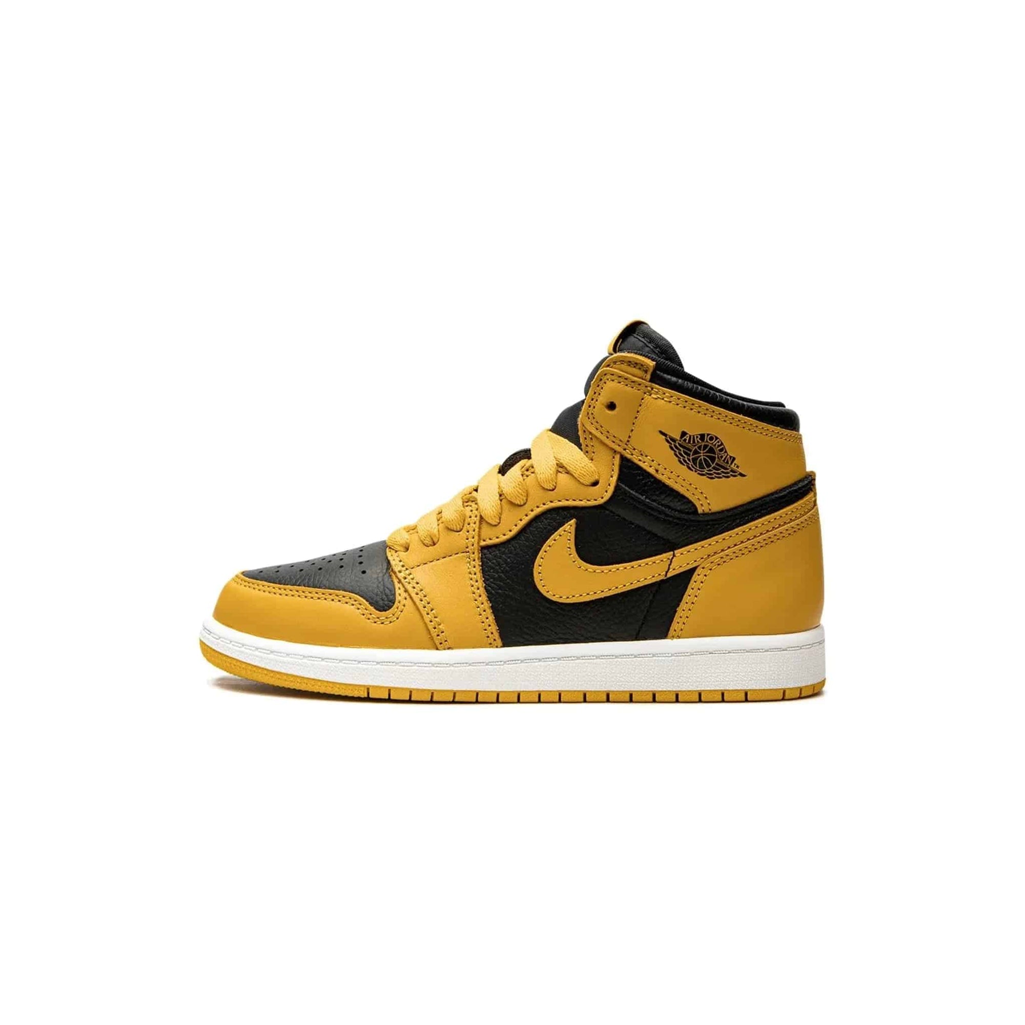 The Air Jordan 1 Retro High OG Pollen (PS) brings serious varsity vibes to the smallest sneakerheads. This iconic high-top comes in a bold combination of deep yellow 'Pollen' and contrasting black leather. The color scheme nods to classic basketball teams, but with a timeless Air Jordan touch.