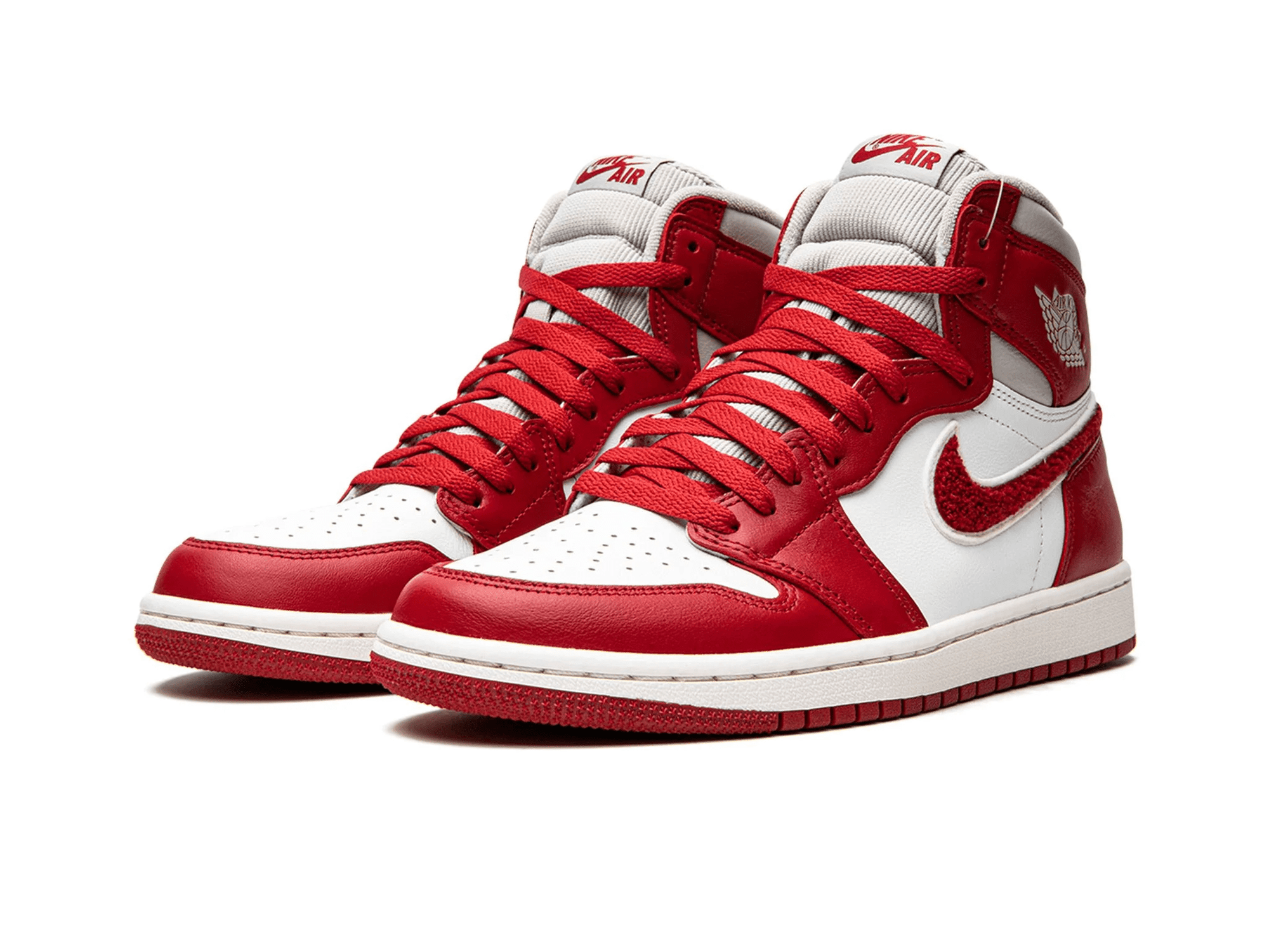 The Air Jordan 1 Retro High OG Varsity Red pays homage to pure basketball heritage with a feminine twist. This high-top classic arrives in clean white leather with bold varsity red overlays and details — a combination that pops without being overpowering. The chenille Swoosh gives the sneaker a unique textural contrast not often seen on an AJ1.