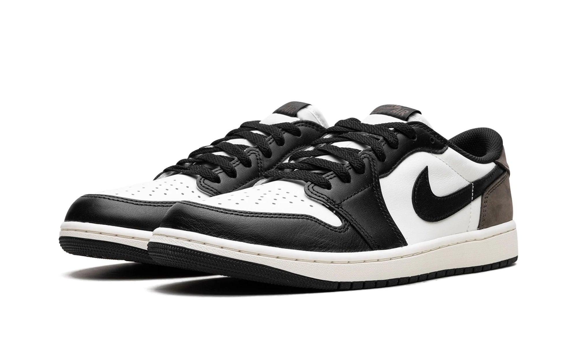 The upper combines premium white leather with deep black overlays and a contrasting brown suede heel. That Mocha hue – subtle yet striking – makes this AJ1 perfect to style with both streetwear and minimalist outfits. The OG styling comes through in the classic tongue label and 'Nike Air' branding, a nod to the original 1985 release.