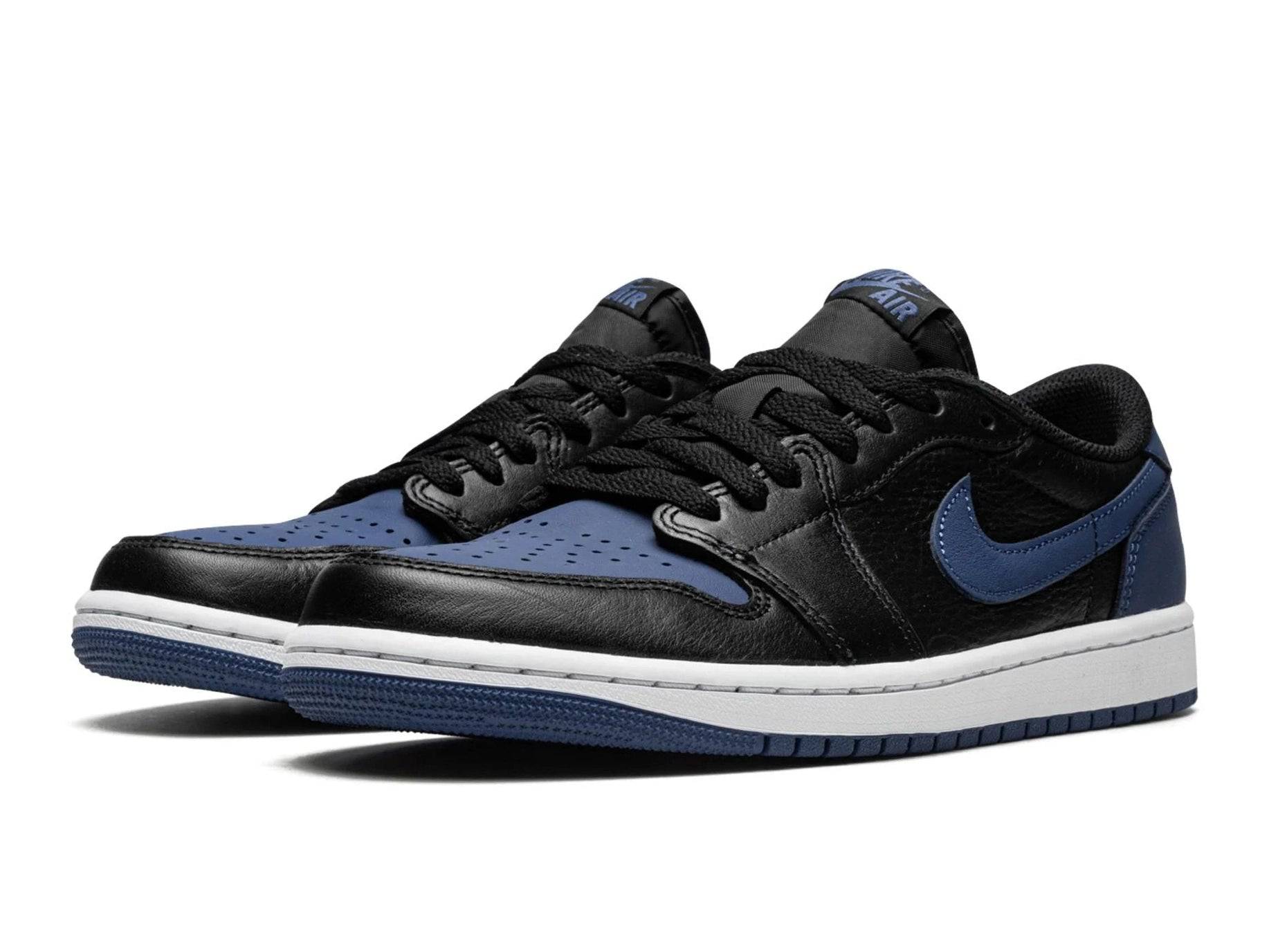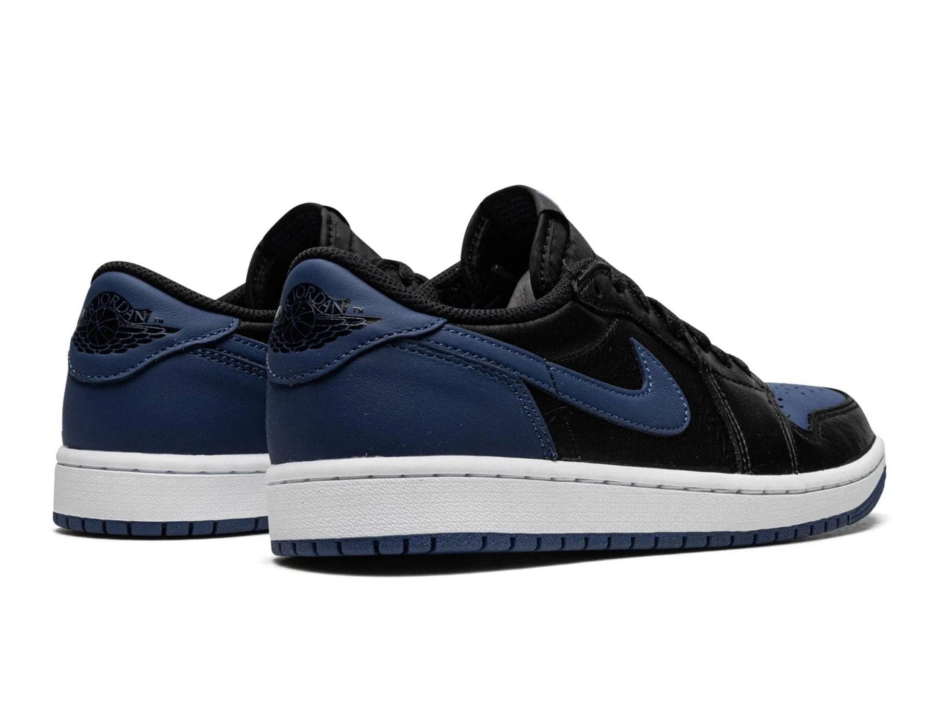 The Air Jordan 1 Retro Low OG Mystic Navy is a timeless classic with a modern twist. This low-top iteration mixes premium materials with bold color blocking that fits effortlessly into any streetwear rotation. The black leather upper contrasts sharply with deep navy accents on the toebox, heel, and Swoosh — a combination that looks both refined and tough.