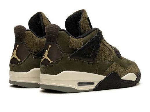 The Air Jordan 4 Retro SE Craft Medium Olive takes craftsmanship to the next level. This iteration of the iconic AJ4 mixes premium materials with a rugged, military look that effortlessly breathes streetwear. Dark green suede and textile overlays are given extra depth by black accents and an off-white midsole — perfectly balanced and ready to stand out.