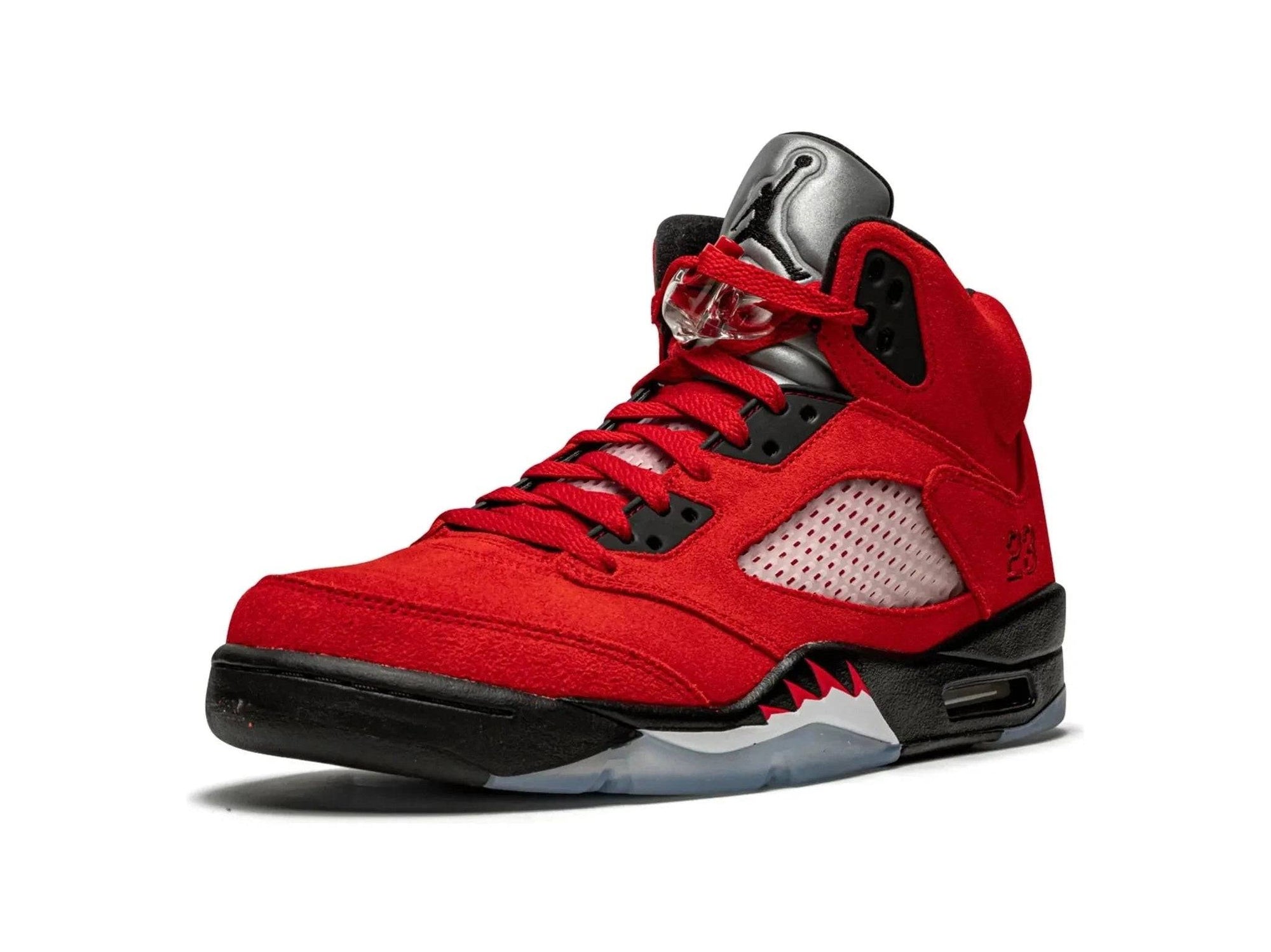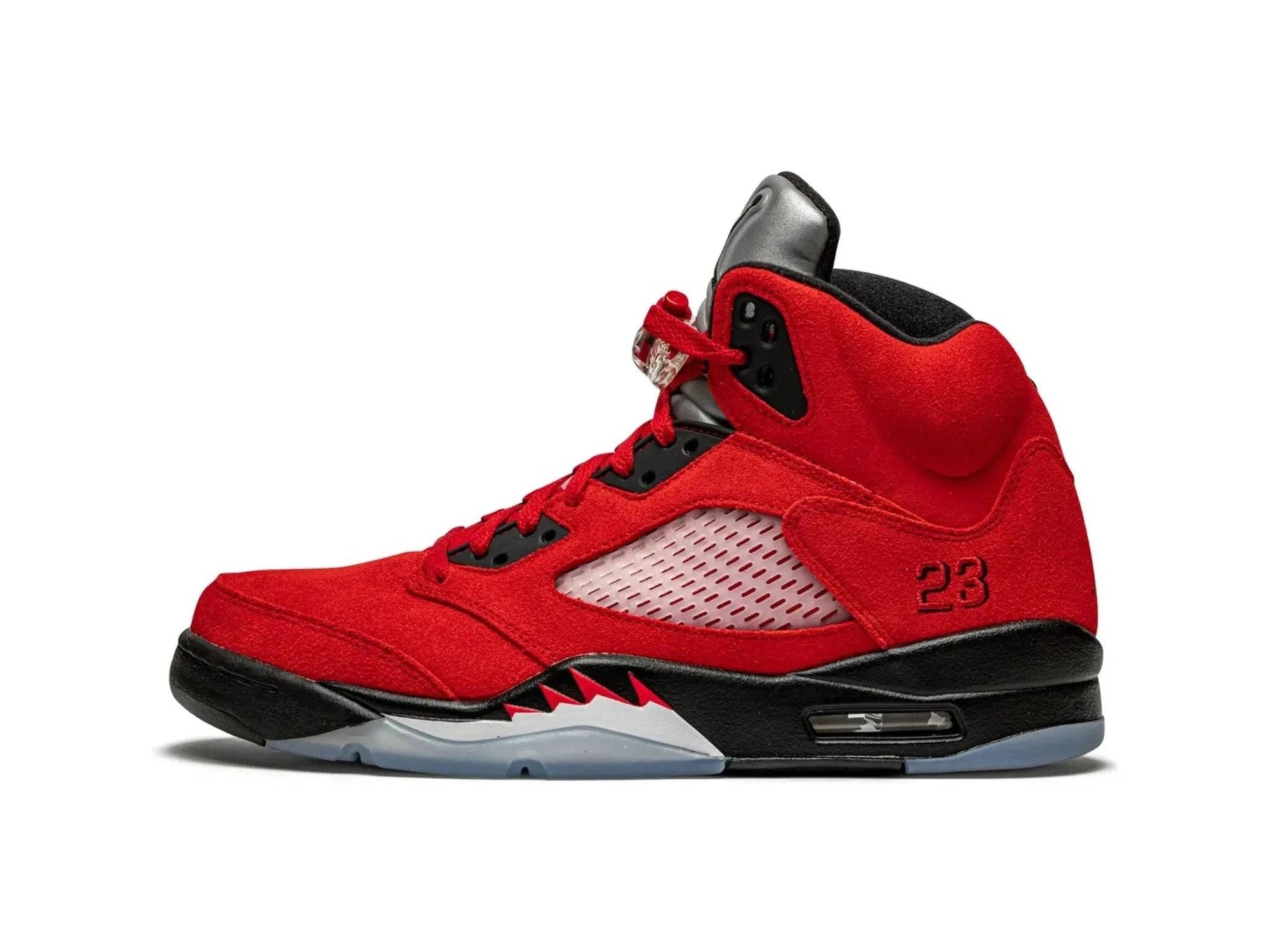 The Air Jordan 5 Retro Raging Bull is an explosion of energy and heritage. Returning from the legendary 2009 Raging Bull Pack, this iconic colorway is a must-have for any serious sneakerhead. The deep red suede upper makes for a powerful statement look, while the black accents and reflective tongue keep the OG vibes alive.