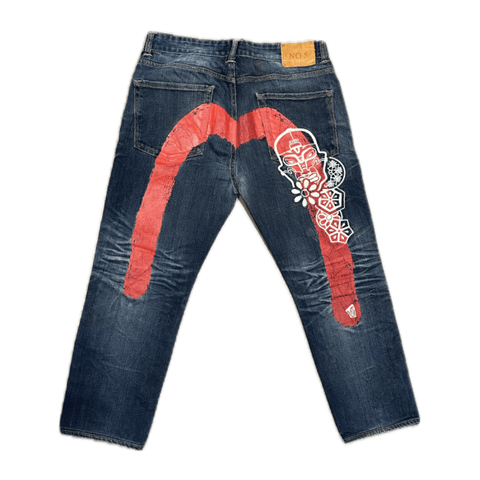 Evisu started out in Osaka in the 90s as a niche brand for denim lovers, and has grown into a global icon in hip-hop and street culture. These jeans bring that DNA front and center — perfect for those who love unique pieces with character. Pair them with your favorite pair of Our Sneakers to really stand out on the street.