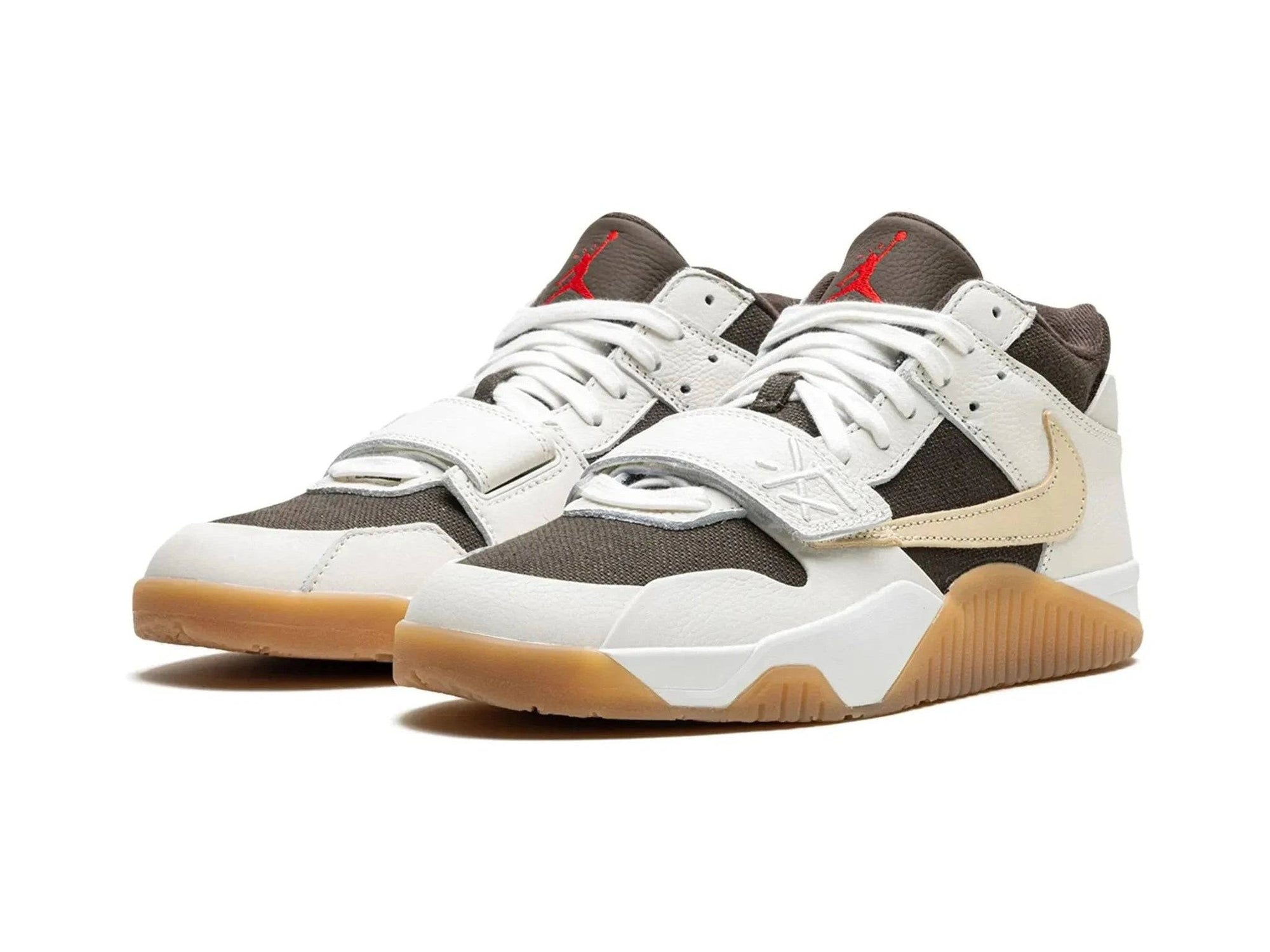 The Jumpman Jack Travis Scott Sail takes the Travis Scott x Jordan collaboration to the next level. This unique silhouette mixes old-school basketball vibes with modern streetwear energy. The reversed Swoosh, now a Travis signature, now comes in a subtle beige hue that perfectly contrasts with the deep brown and sail-colored leather of the upper. A gum sole completes the look and gives the sneaker that raw edge that sneakerheads love.