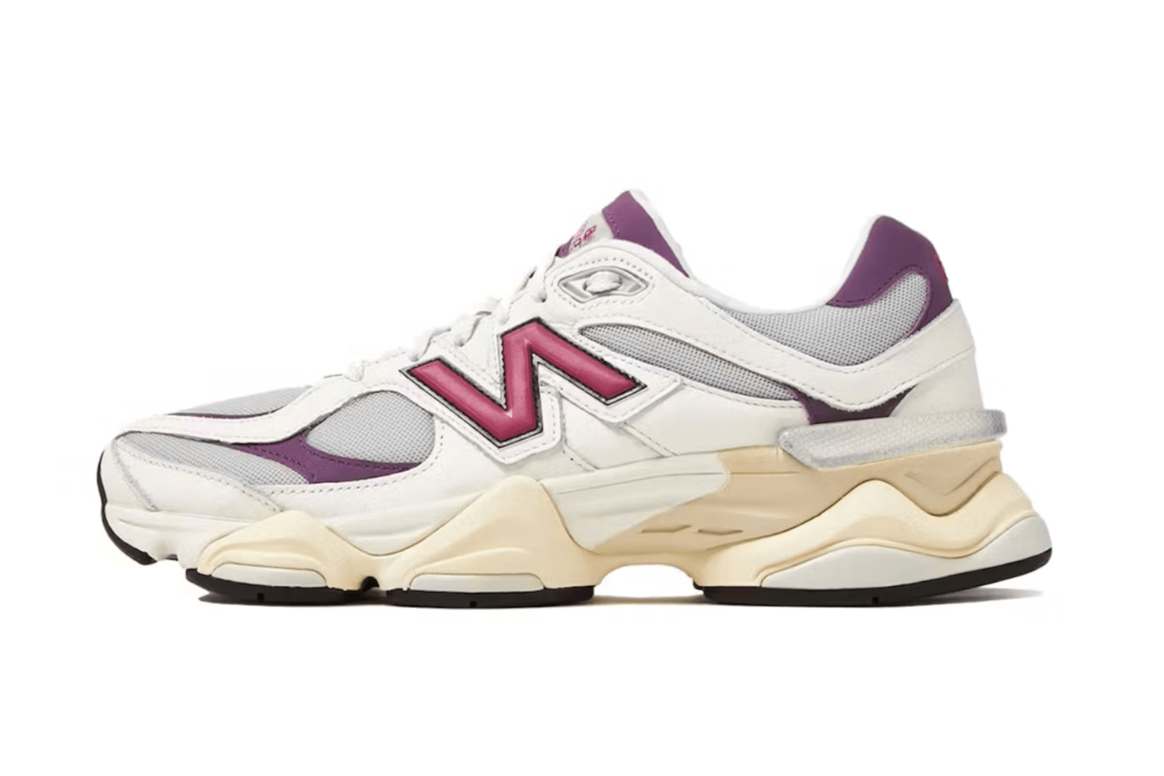 Thanks to a mix of mesh, suede and leather, the upper feels sturdy and breathable. Purple and magenta accents give a contemporary edge to the off-white base, while the cream midsole provides that vintage aesthetic that the New Balance 9060 is known for. The ABZORB and SBS technology in the sole also offer a combination of cushioning and stability that will surprise you all day long.