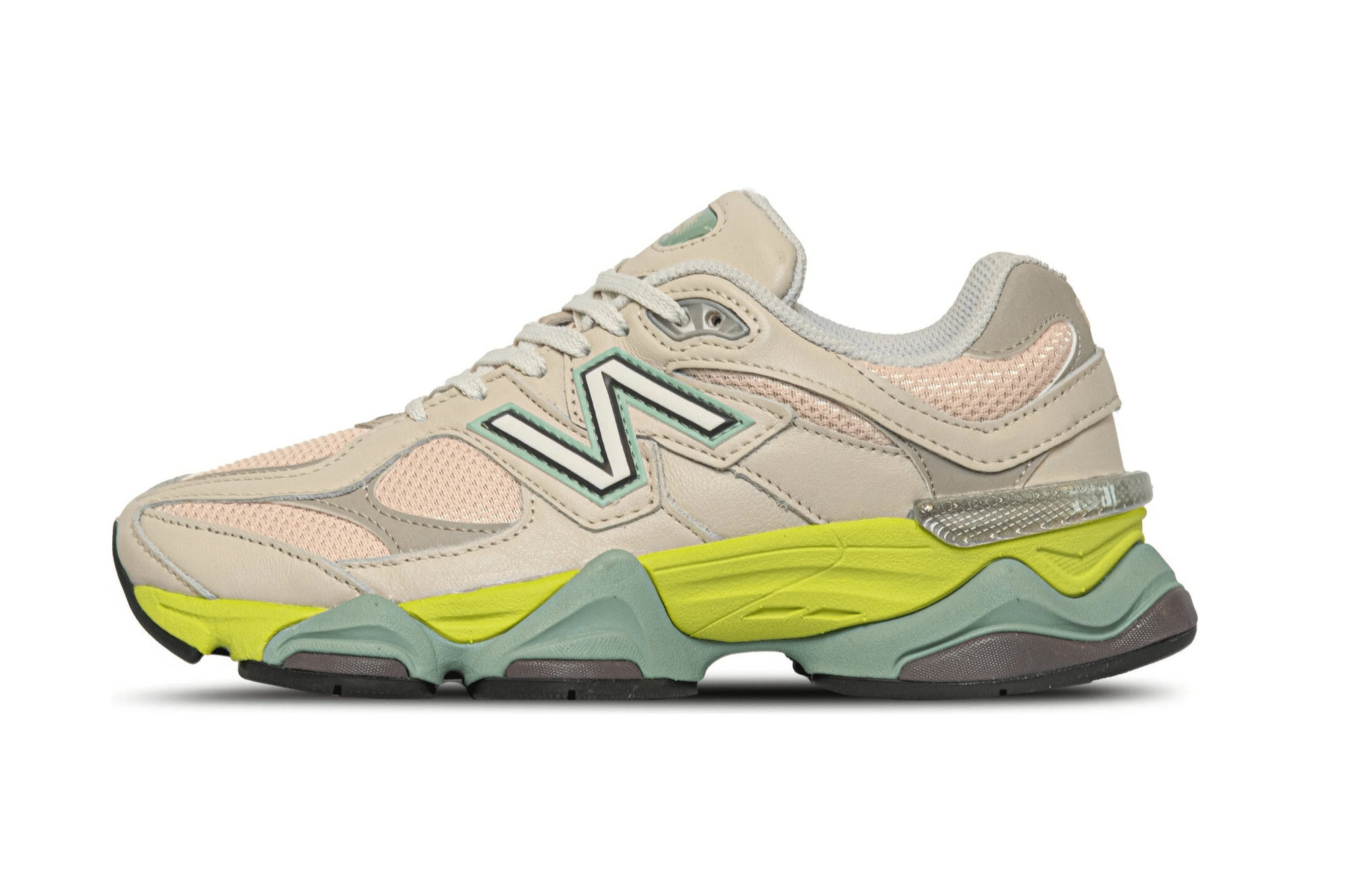 What really sets this 9060 apart is the dynamic sculpture of the sole. Inspired by the NB 990 series but with an extra dose of attitude, this sole offers exceptional cushioning thanks to the mix of ABZORB and SBS technology. The iconic "N" branding is outlined in mint green and black, adding subtle contrasts to the silhouette.