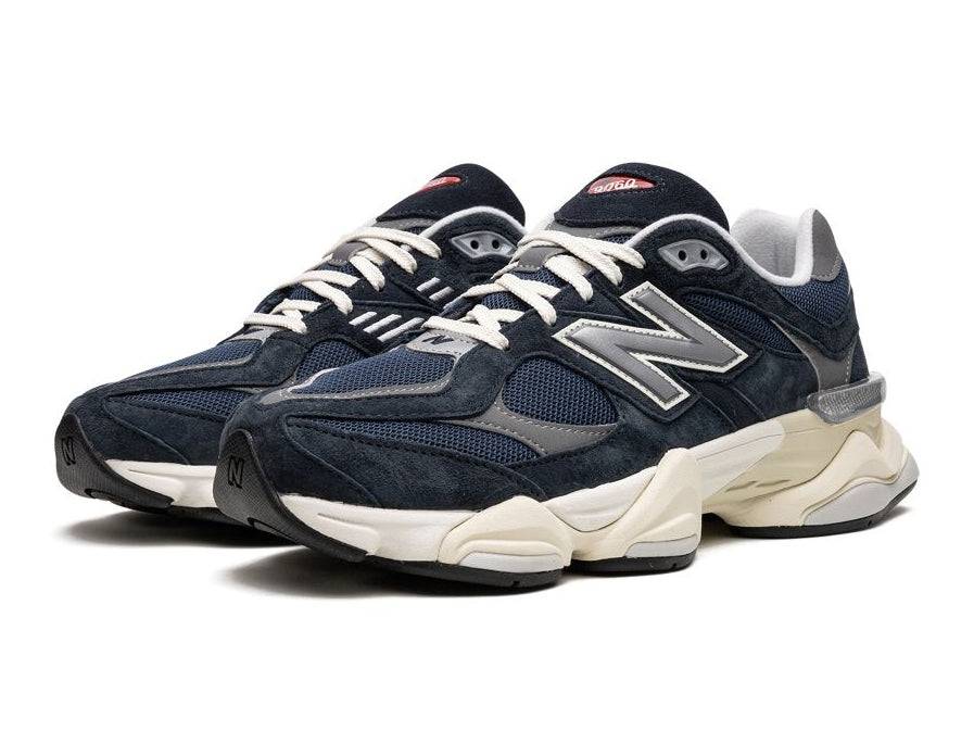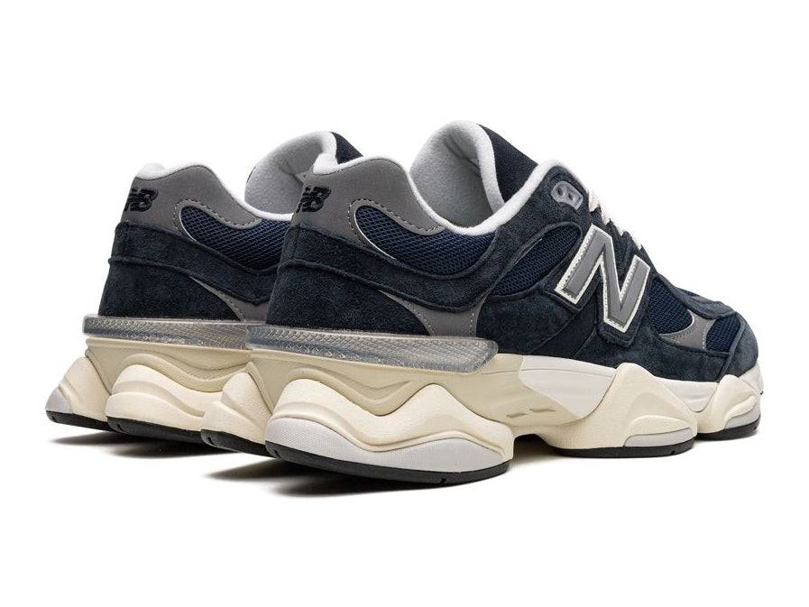 The New Balance 9060 Navy is where retro vibes and futuristic street style collide. This silhouette elevates classic NB DNA with a chunky sole and updated layering. Combining deep navy hues with grey tones and off-white accents creates a strong, yet wearable look that will elevate any outfit — whether you're going for technical streetwear or a relaxed denim fit.