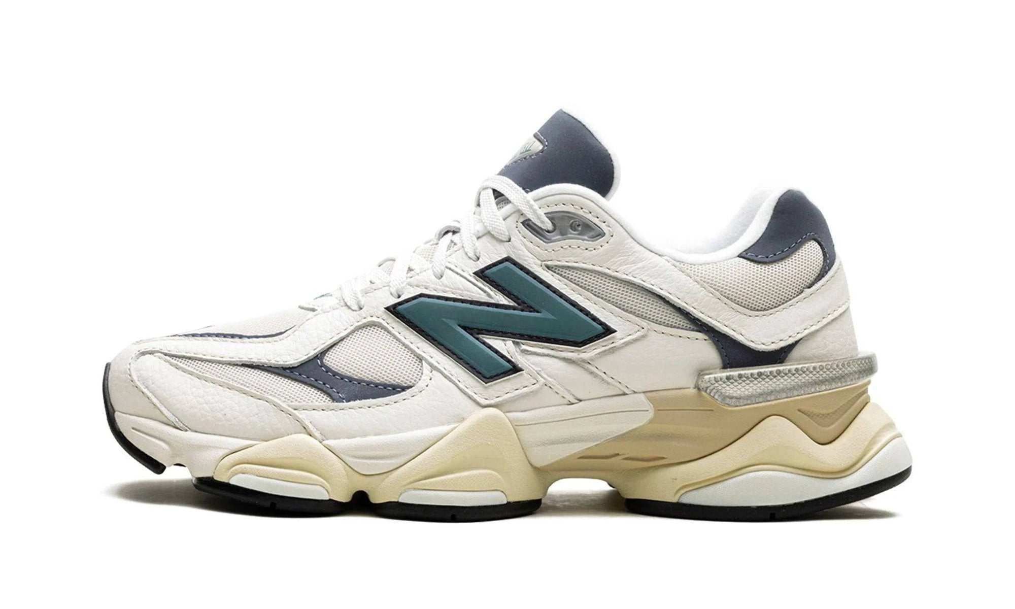 The New Balance 9060 New Spruce takes retro-futurism to the next level. With a chunky sole, asymmetrical overlays and a bold N logo in a vibrant teal, this sneaker will stand out on any street or feed. The combination of leather, mesh and suede creates a rich textured mix that's as comfortable as it is stylish.