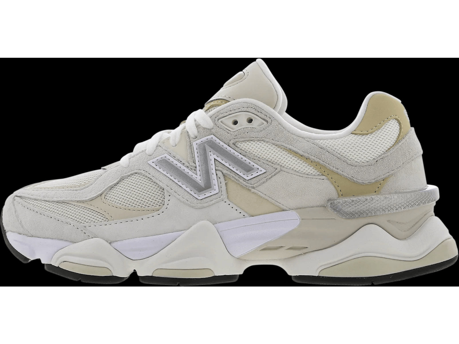 The upper is made of premium suede and breathable mesh, with overlapping panels in soft beige and off-white tones. The oversized sole with ABZORB and SBS cushioning not only provides comfort, but also that striking architectural design that the 9060 series is known for.