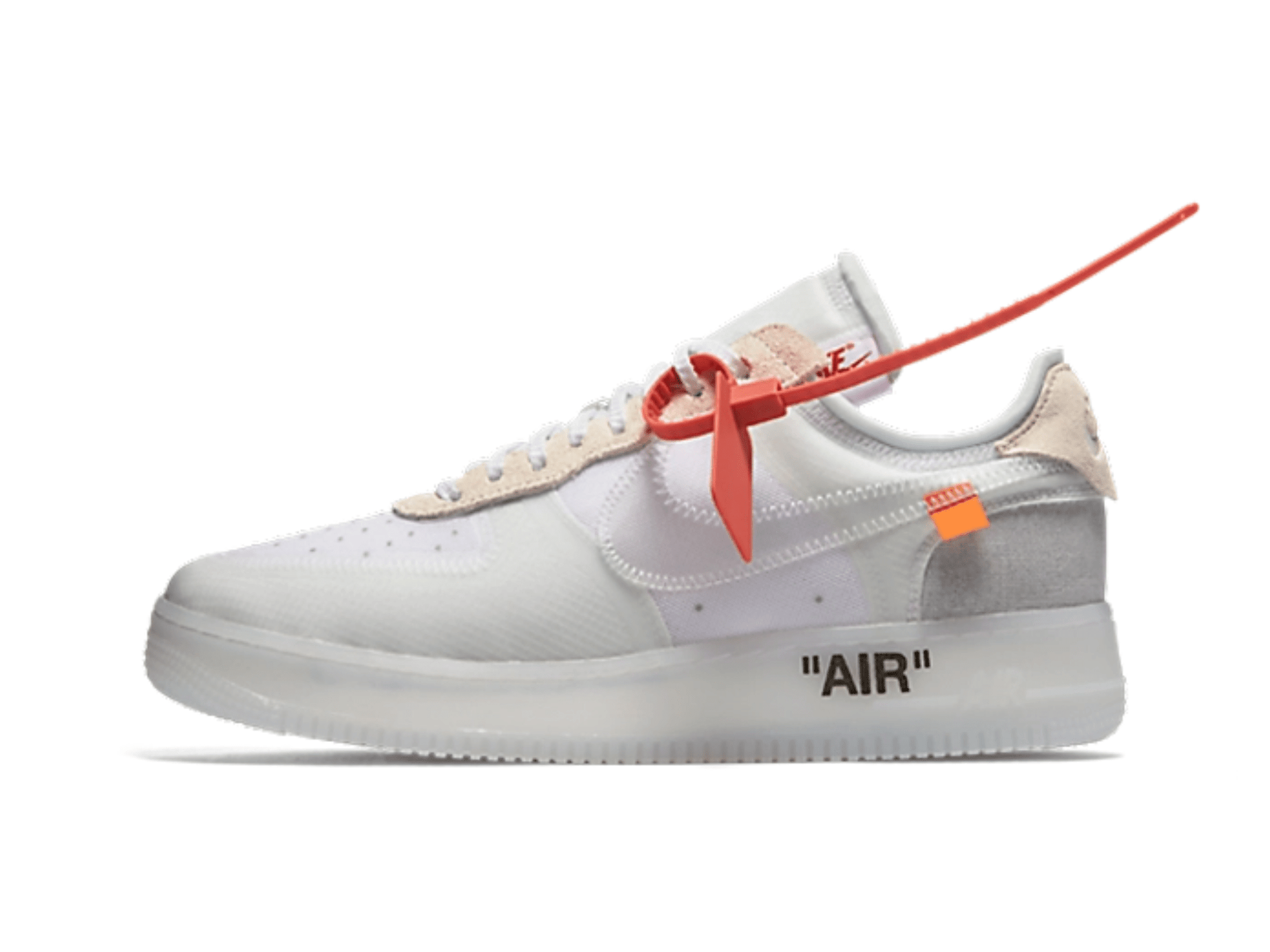 The 'AIR' statement on the sole and the orange tag on the Swoosh are typical Off-White features — a subtle nod to streetwear purists. The semi-transparent outsole makes this design extra eye-catching, without losing its wearability. This drop is part of “The Ten”, the legendary line that turned the sneaker world upside down from 2017. Whoever rocks this shoe still shows a sense of design and culture.