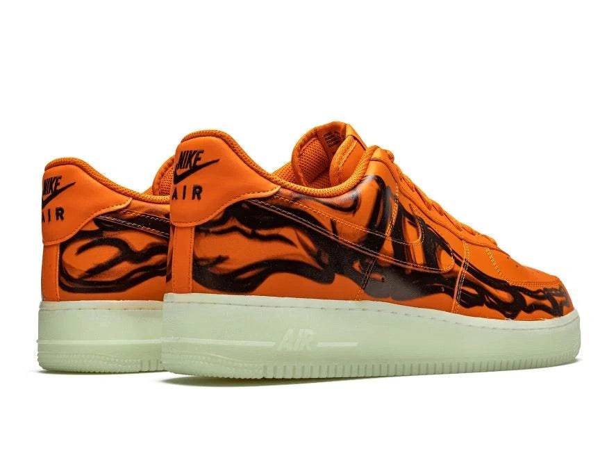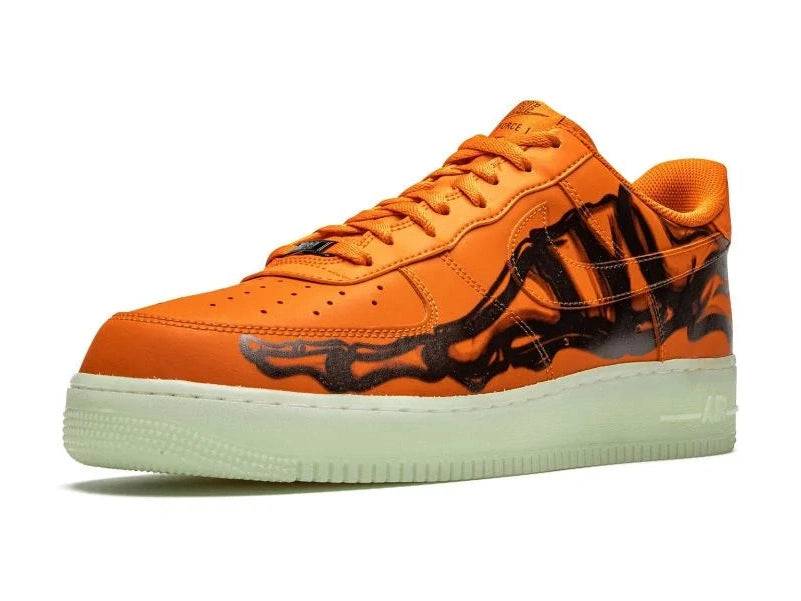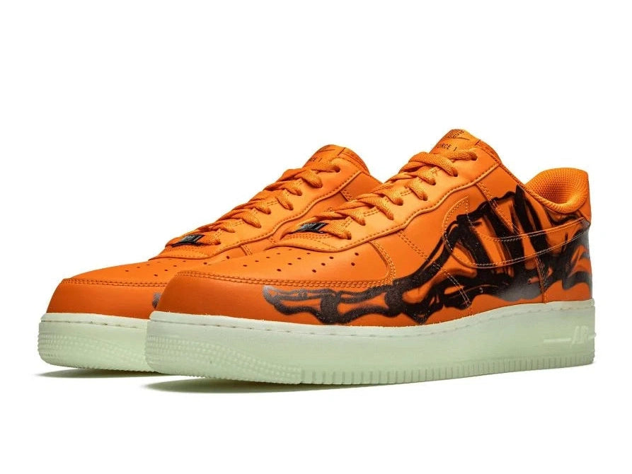 Do you dare to stand out? The Nike Air Force 1 Low Orange Skeleton is anything but subtle. This Halloween-inspired sneaker mixes the iconic Air Force 1 silhouette with a bright orange upper and a black skeleton print across the sides. The glow-in-the-dark sole makes this release extra unique: bright during the day, strikingly spooky at night.