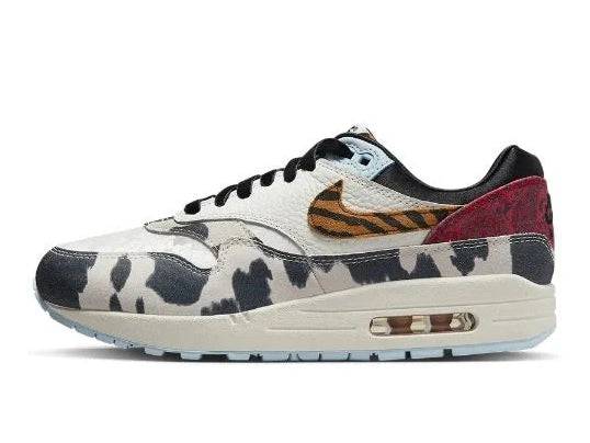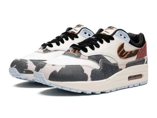 The Nike Air Max 1 '87 Great Indoors is an ode to flair, fantasy and the beauty of home. This release combines luxurious fabrics and bold prints — from cow print on pony hair to a tiger-striped Swoosh — into one incredible statement on your feet. The color palette mixes cream leather with black, light blue and deep red suede for a look that's as wild as it is stylish.
