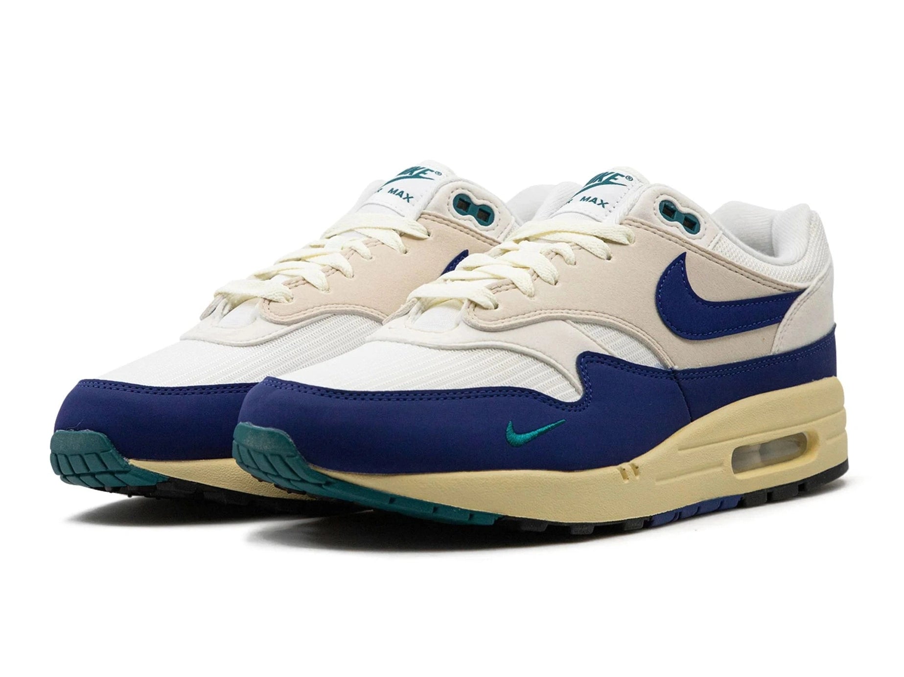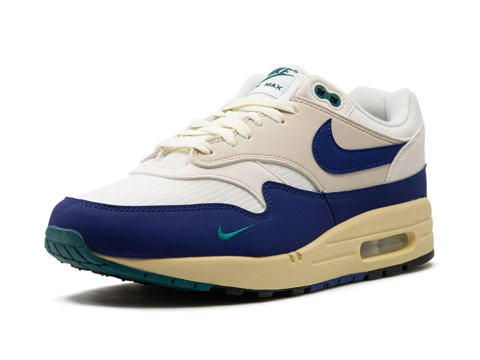 The Nike Air Max 1 Athletic Department Deep Royal Blue pays homage to classic sports style with a fresh, retro vibe. Mixing nostalgia with sleek design, this sneaker delivers a timeless colorway that works seamlessly with every fit, from streetwear to techwear. The suede and mesh upper in off-white and deep royal blue exudes premium vibes, while the dark green mini Swoosh and vintage yellow-tinted sole provide that sought-after old-school feel.