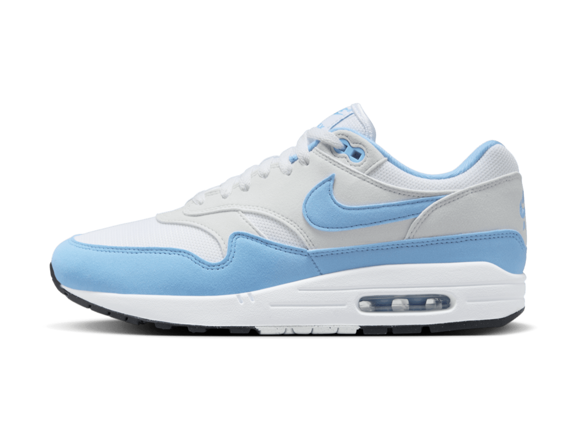 The visible Air unit in the sole, once revolutionary in 1987, still provides ultimate comfort and a recognizable silhouette. The University Blue colorway is a subtle nod to classic sportswear, putting this Air Max 1 in line with other iconic colorways from Nike history.