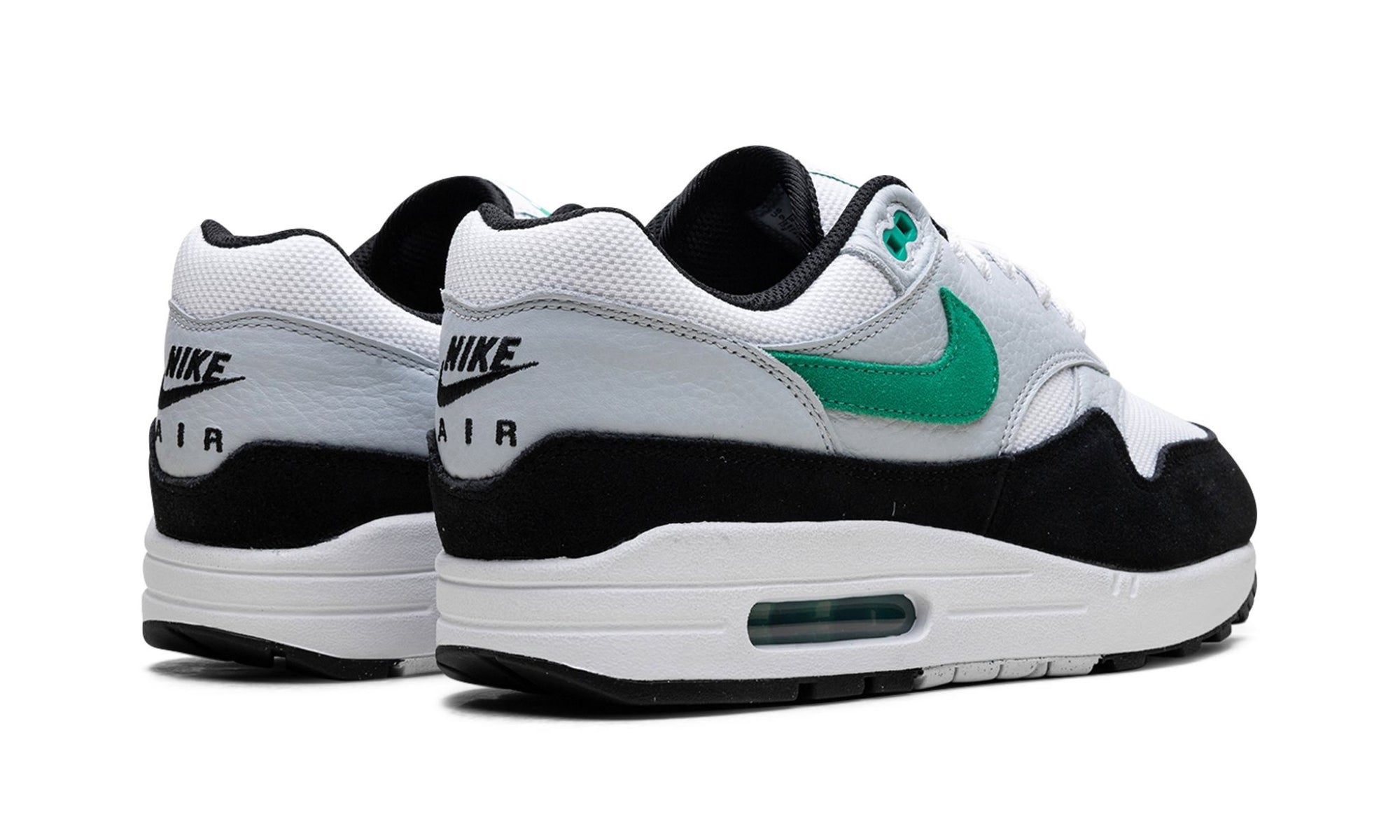 The Nike Air Max 1 White Black Stadium Green is a fresh take on a timeless silhouette that's been setting the standard for sneaker style since '87. With a clean white-on-white base and contrasting black overlays, this OG runner stands out with a deep green Swoosh — an eye-catching accent that elevates any fit. A visible Air unit in the sole provides that classic Nike feel that will make your sneakerhead beat faster.