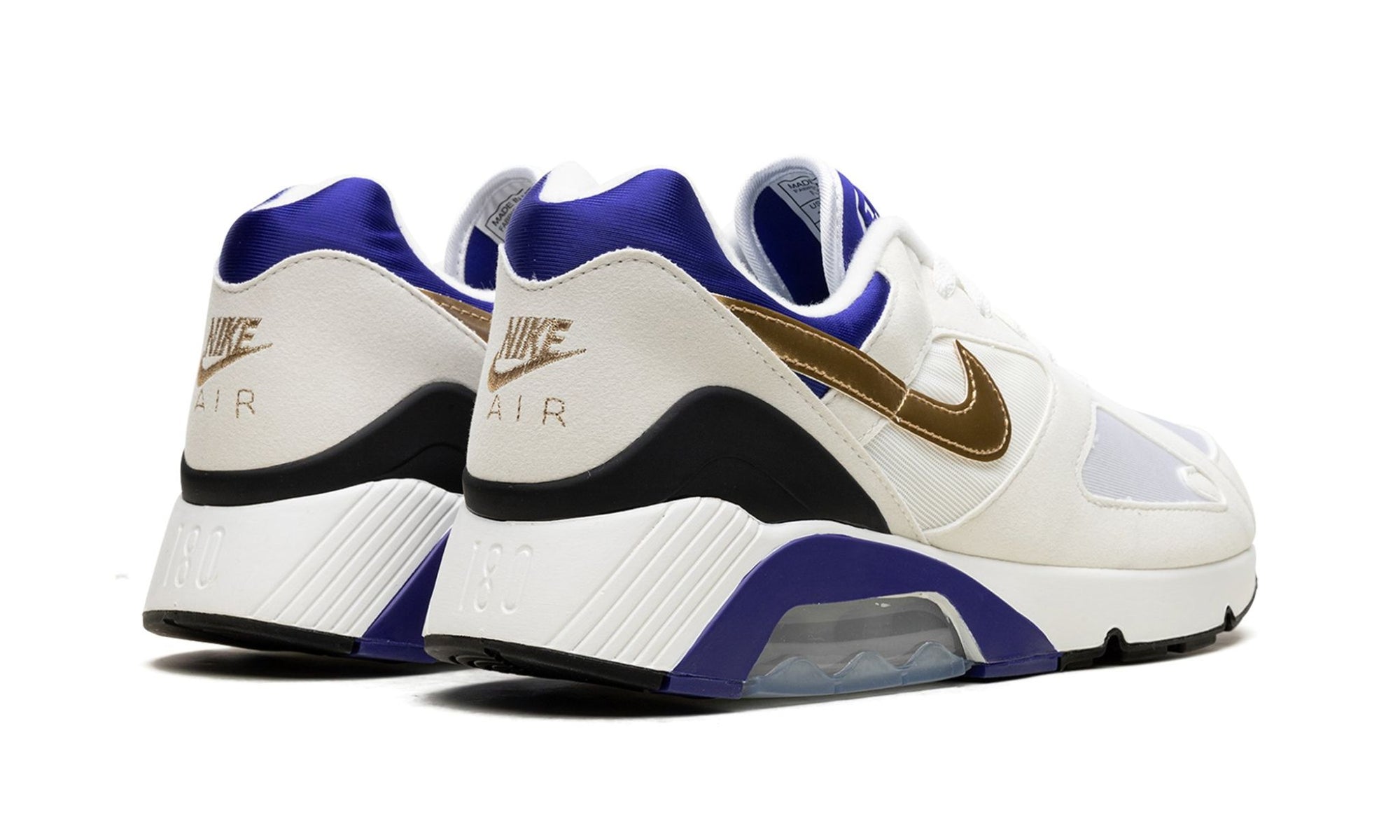 The Nike Air Max 180 Summit White Concord is back, bringing straight-to-the-early-'90s vibes with it. This OG runner exudes vintage yet feels surprisingly modern, with a fresh mix of sporty lines and bold pops of color. The combination of Summit White, metallic gold, and popping Concord blue sets a bold yet stylish tone.