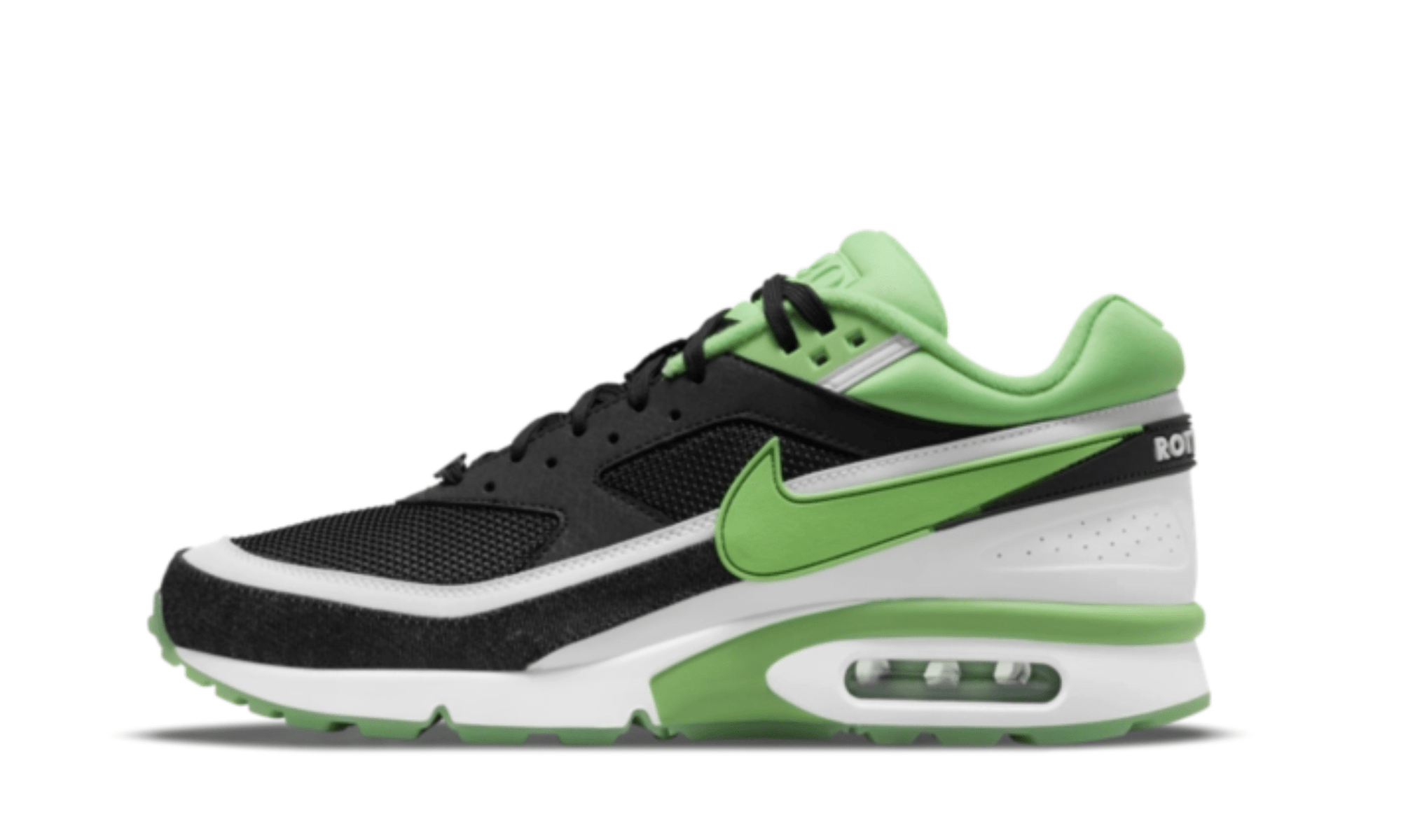 The Nike Air Max BW QS Rotterdam pays homage to the raw energy of the port city — and you can feel that vibe in every step. This colorway mixes bold black and fresh green accents with a clean white midsole, making it as striking as the Rotterdam skyline.