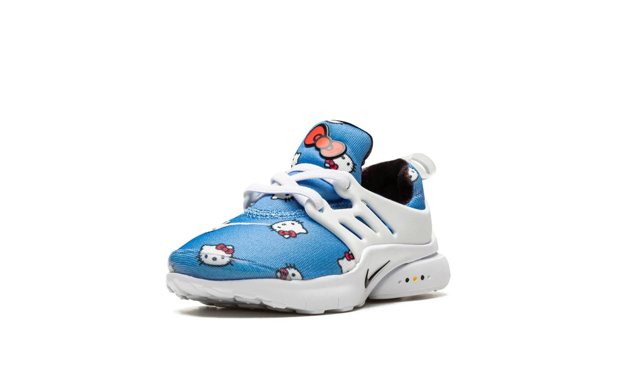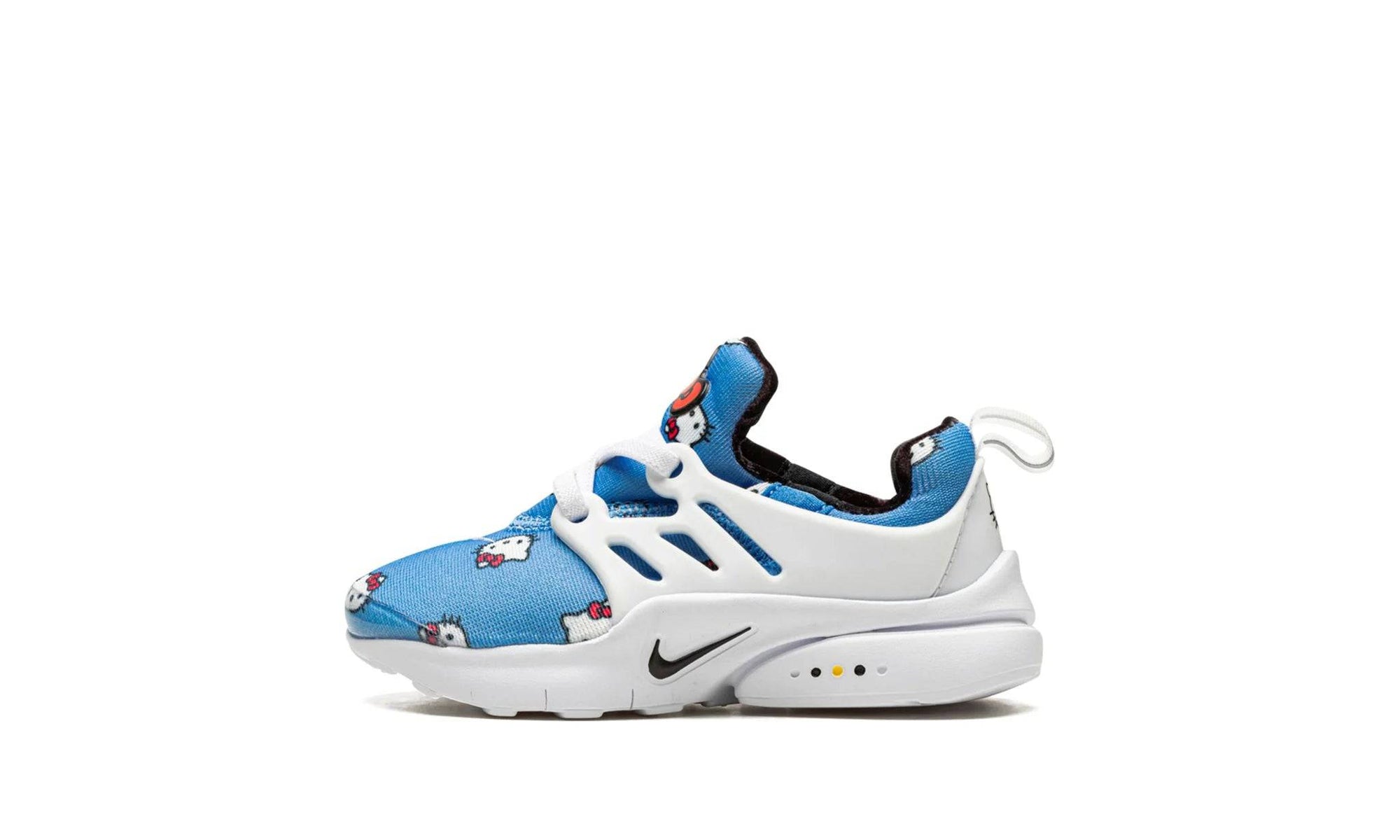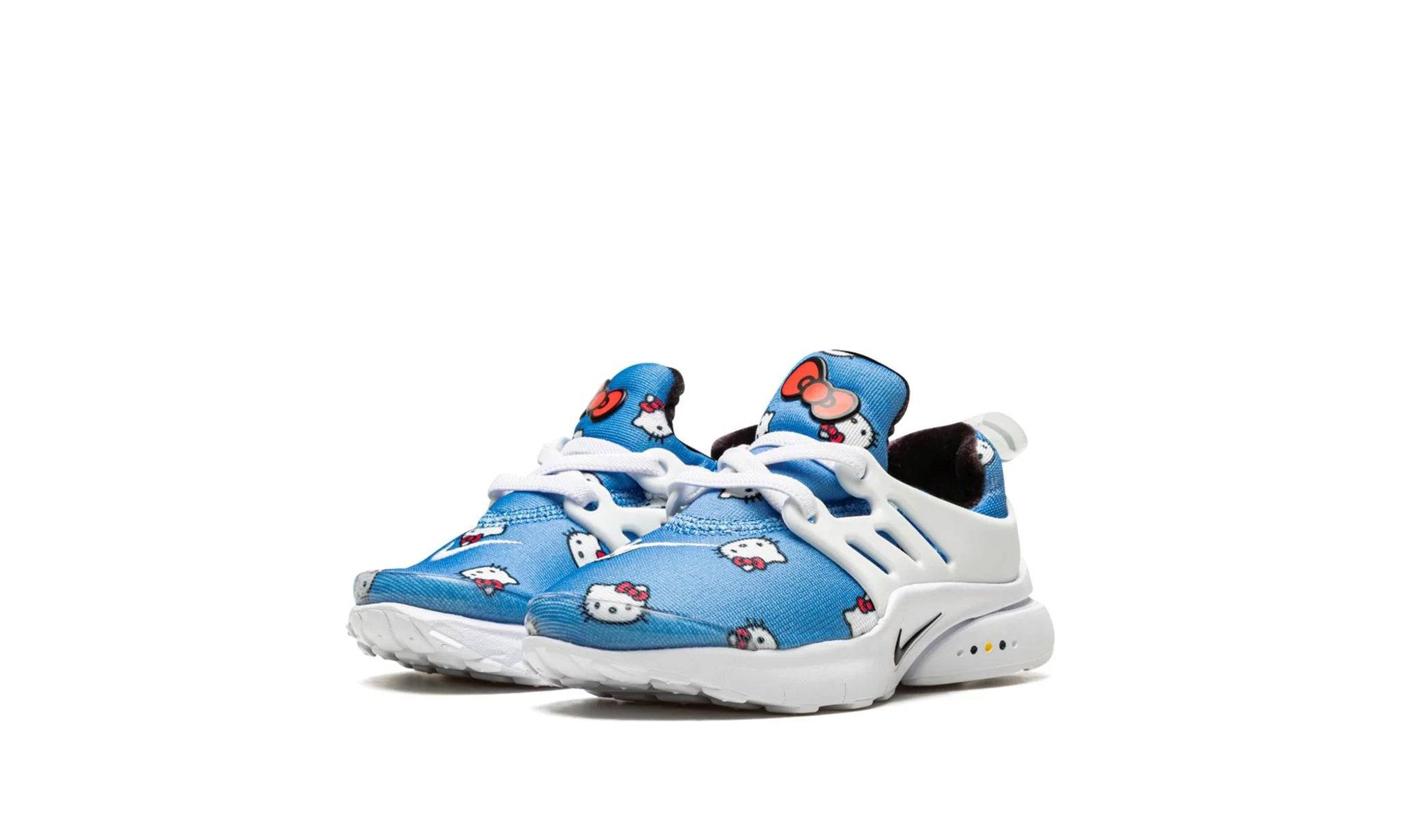 With the Nike Air Presto Hello Kitty (2022) (PS), Nike serves up a dose of pure nostalgia with a nod to pop culture. These playful pairs bring back the cult figure Hello Kitty in style — packaged in a child-friendly closure, but with the same impact as a full-size drop. The bright blue upper is covered with subtle Hello Kitty heads and gives the shoe a cheerful, eye-catching look that cannot be missed on the streets.