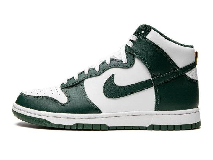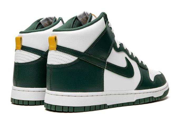 - Design: High-top with classic Dunk paneling and gold details