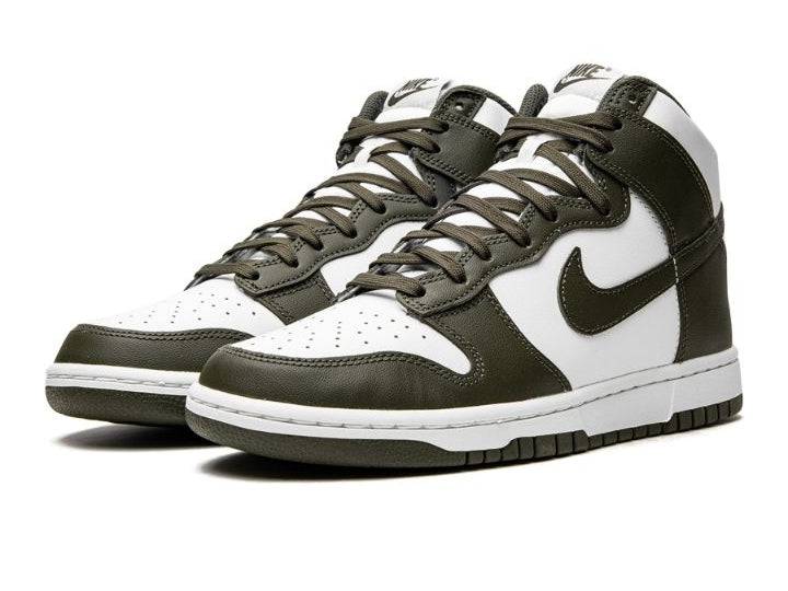 The Nike Dunk High Cargo Khaki is a must-have for those who love classic basketball vibes with a modern streetwear twist. This high-top edition mixes the iconic Dunk DNA with a military-inspired colorway in deep olive and crisp white — perfect for a clean, yet distinctive look. Whether you're hitting the streets or looking to complete your fit, these sneakers will take your game to the next level.