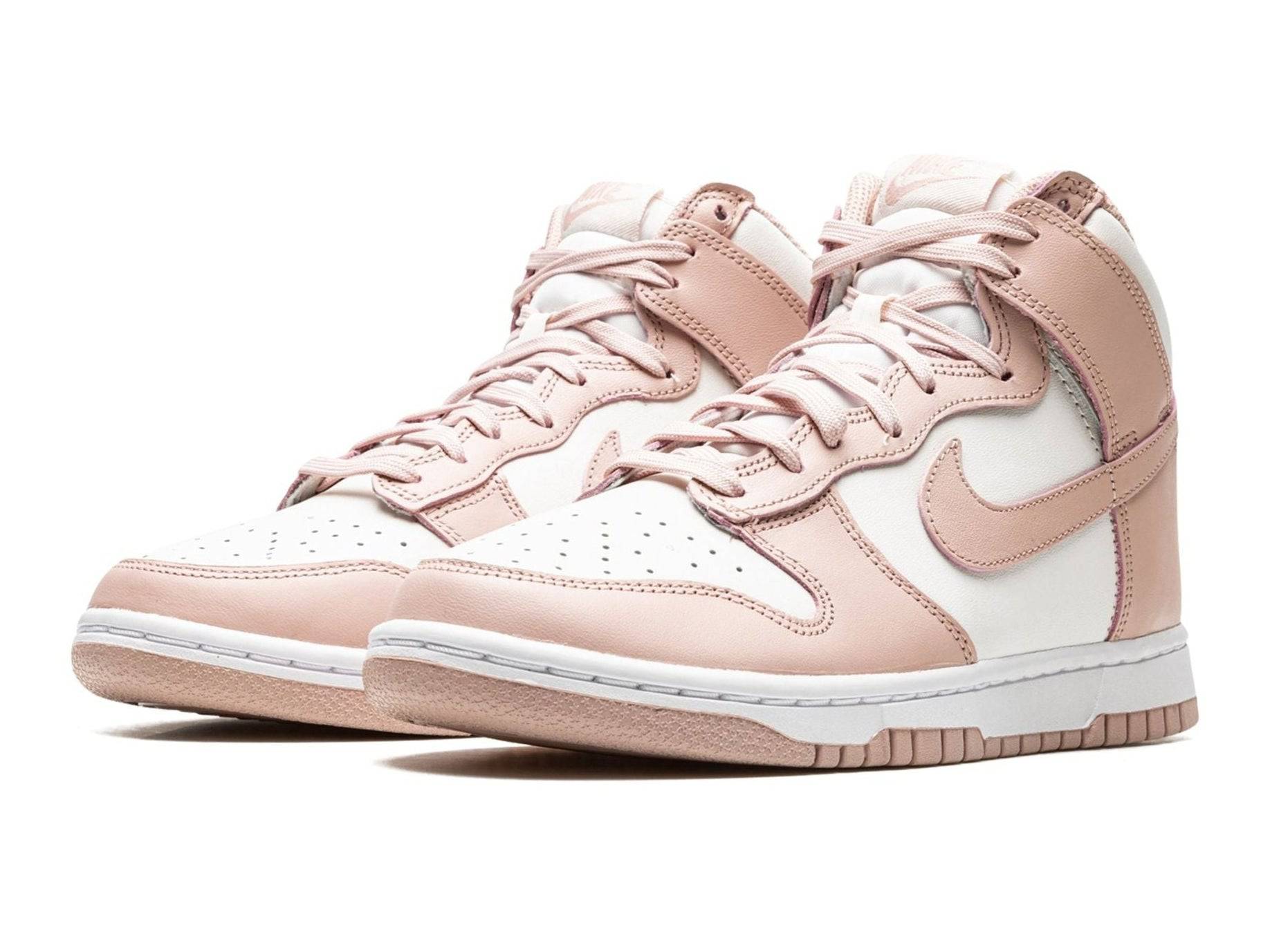 The Nike Dunk High Pink Oxford brings a fresh, feminine touch to an absolute classic. The high-top silhouette from the '80s is back, but in a soft colorway that fits seamlessly with both streetwear and a more minimalist style. The combination of the 'Pink Oxford' overlays with an off-white base gives this Dunk a clean, refined character that is completely of today.