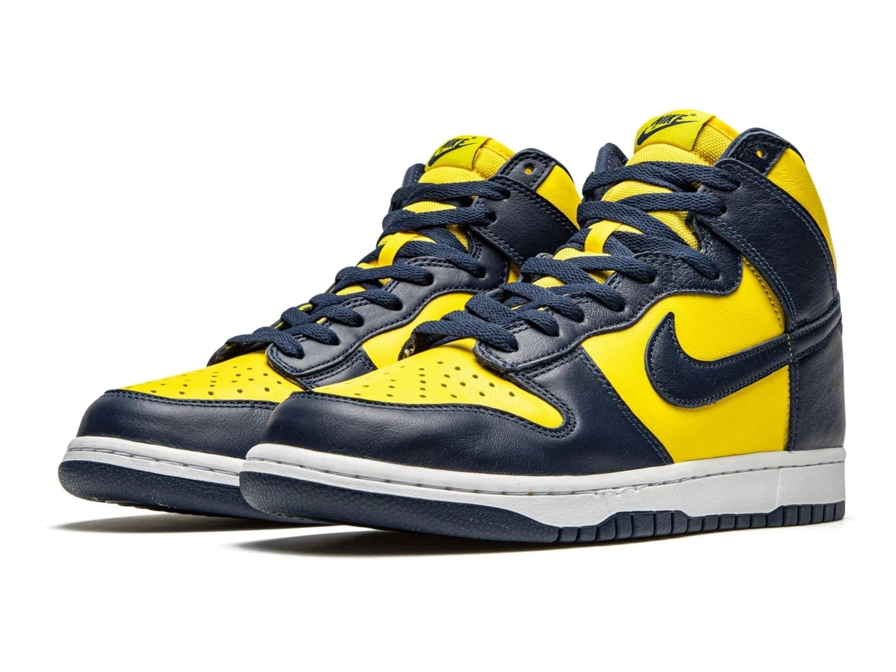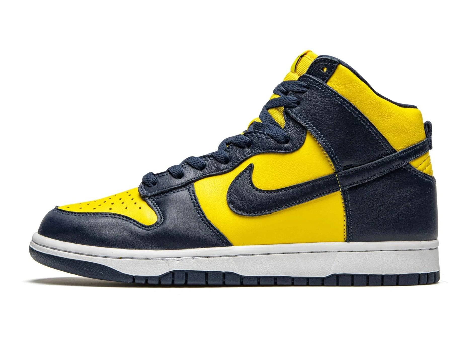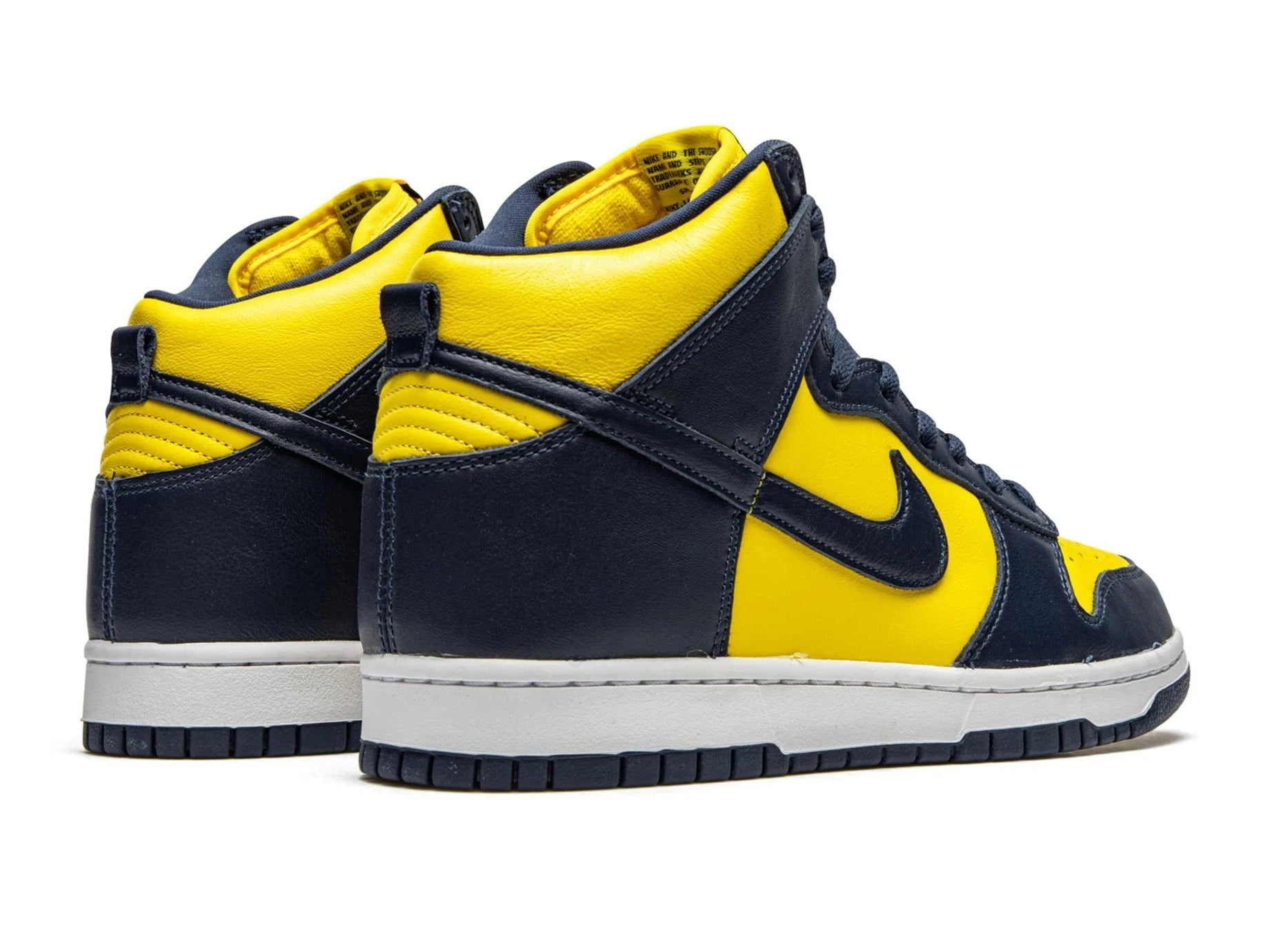 The Nike Dunk High SP Michigan is a throwback to the archives of college basketball culture. Hailing from the iconic 1985 "Be True to Your School" campaign, this OG colorway brings back classic varsity vibes — now with modern streetwear appeal. The contrast of rich "Varsity Maize" and deep navy overlays makes this Dunk a definite head-turner on the streets.