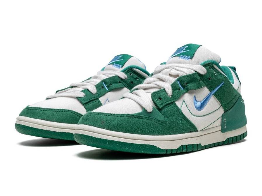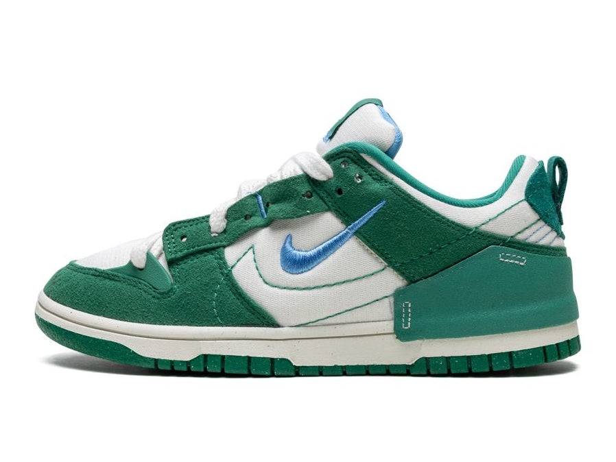 The Nike Dunk Low Disrupt 2 Malachite is for those who dare to break the norm. This sneaker combines the iconic Dunk Low silhouette with an experimental twist. Deep green suede overlays over an off-white canvas base create a fresh, sporty look that will instantly make you stand out. Embroidered Swooshes in light blue add an extra pop of color that takes this pair to the next level.
