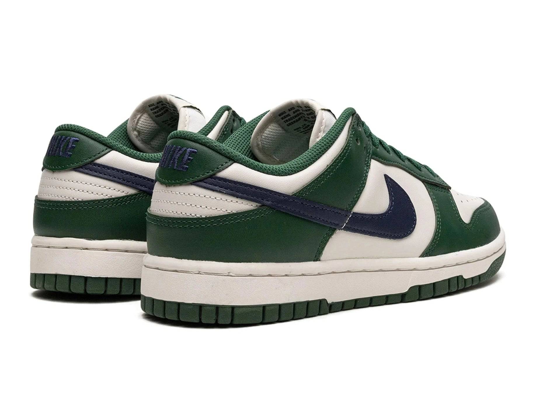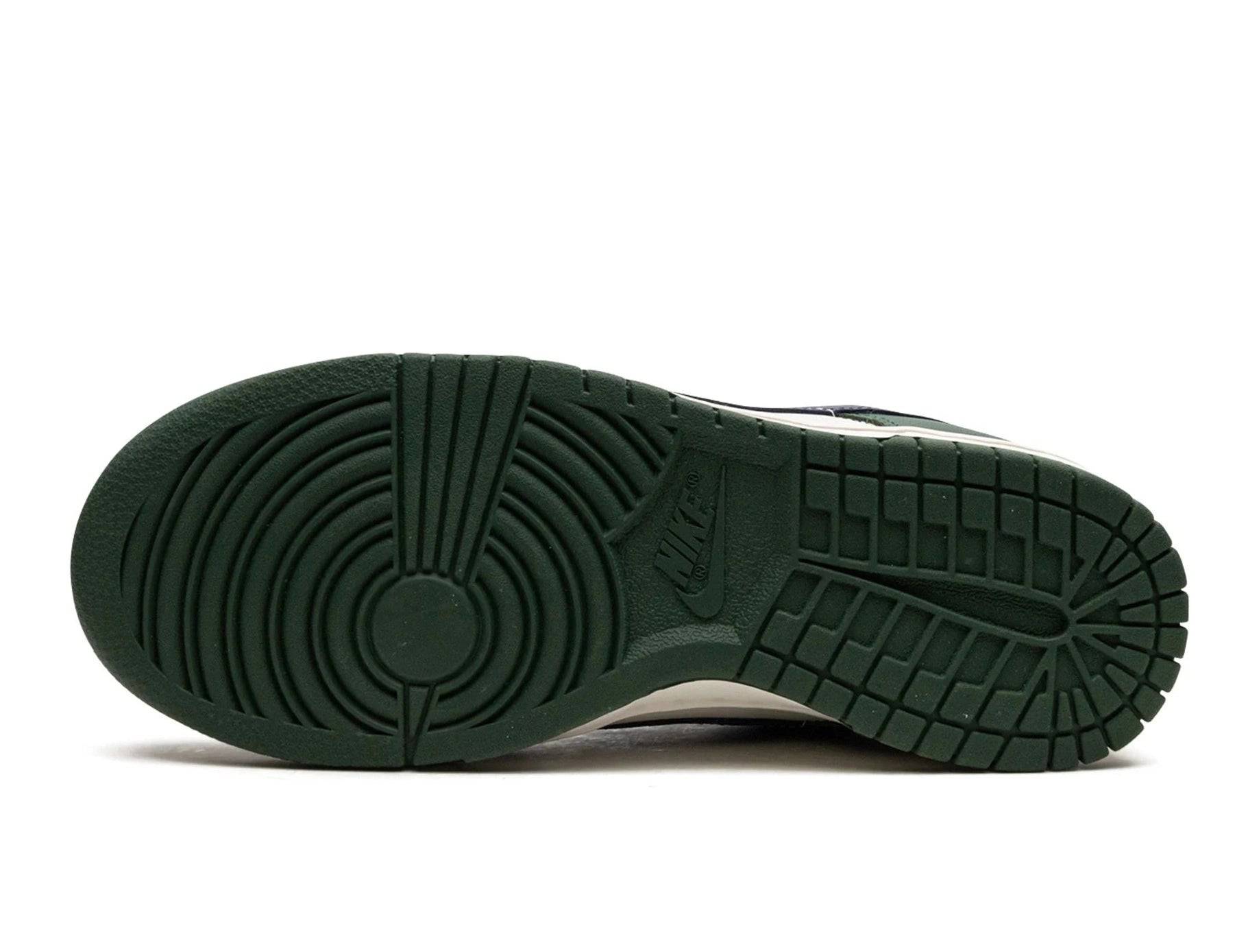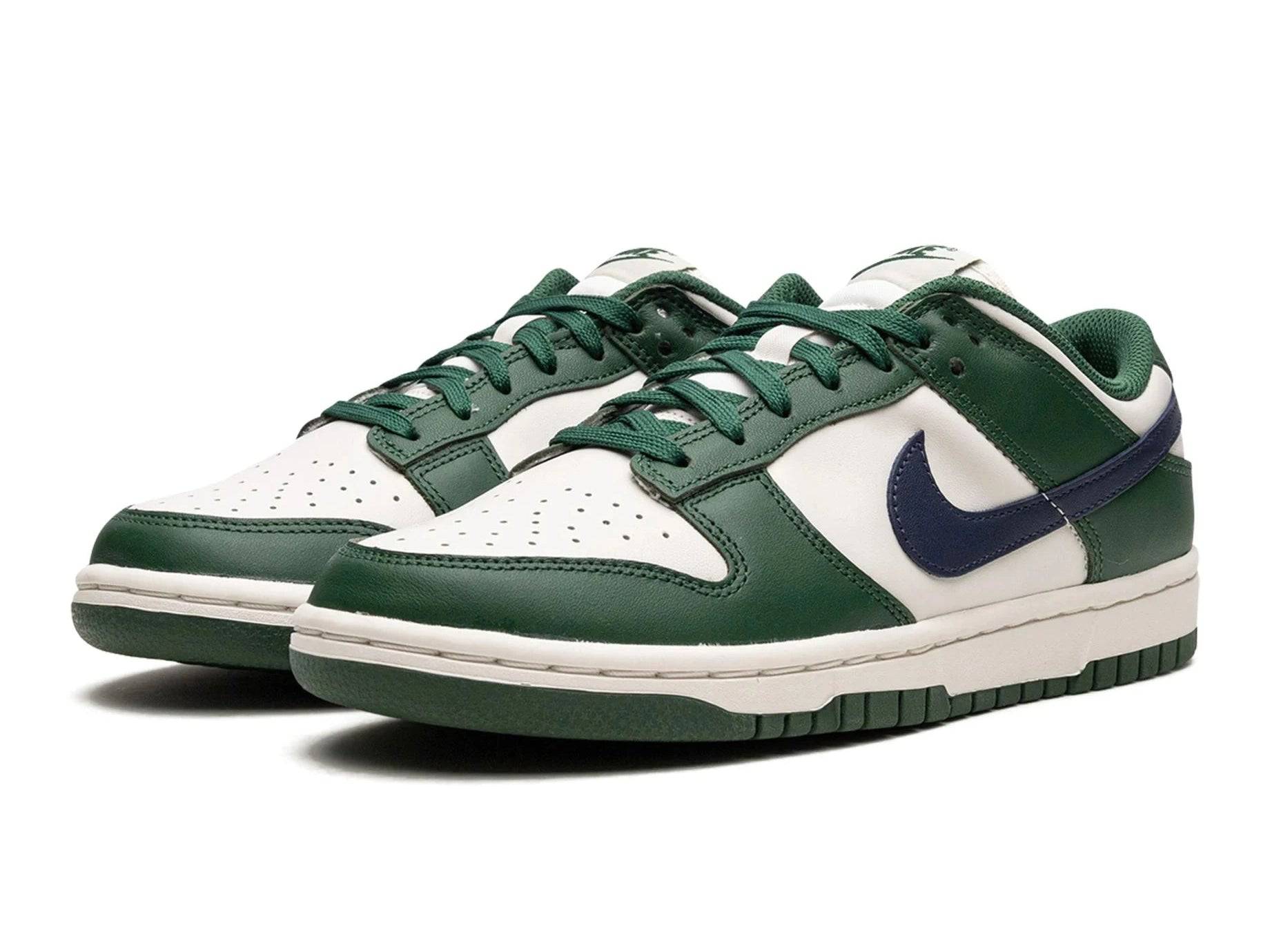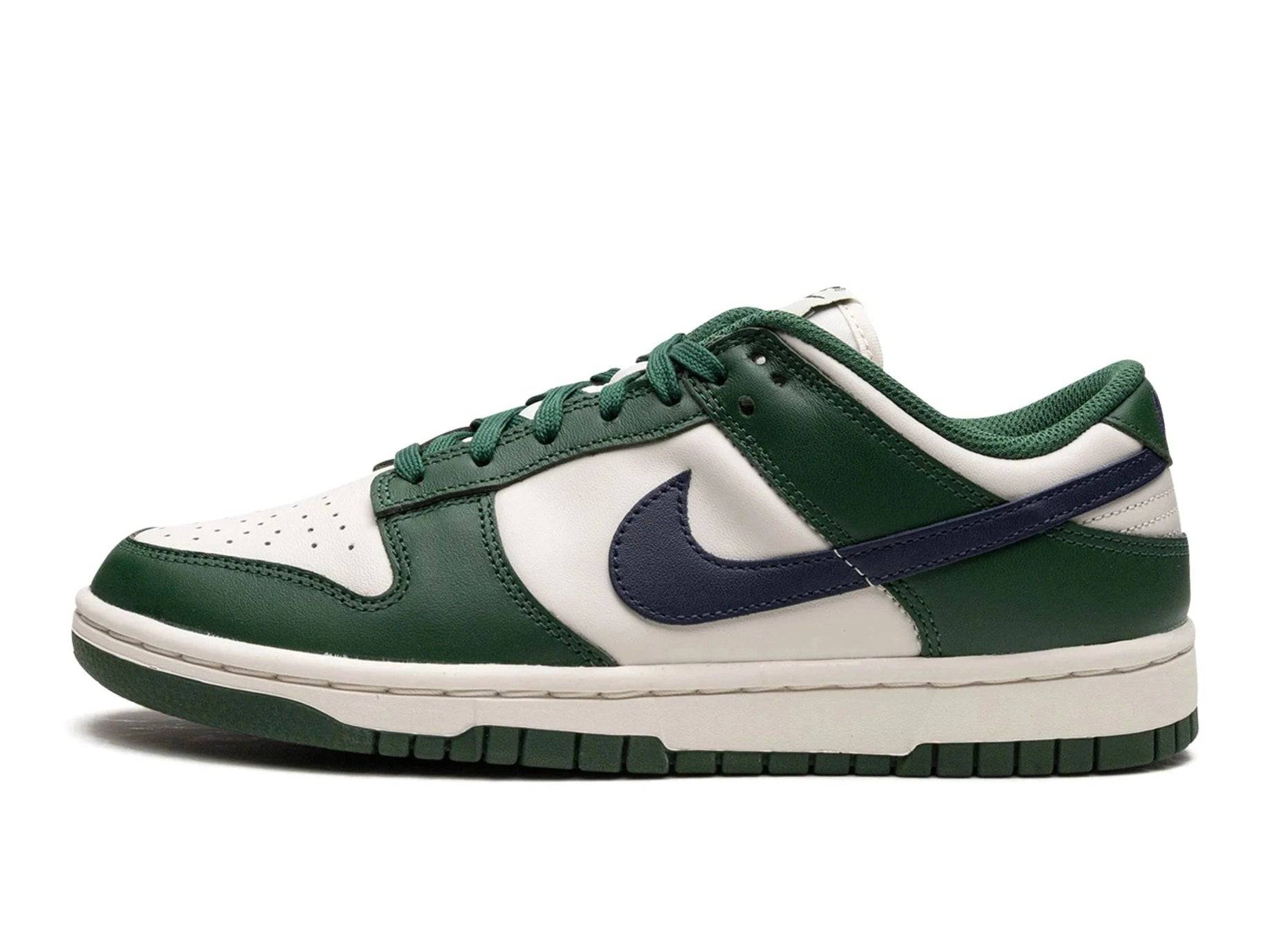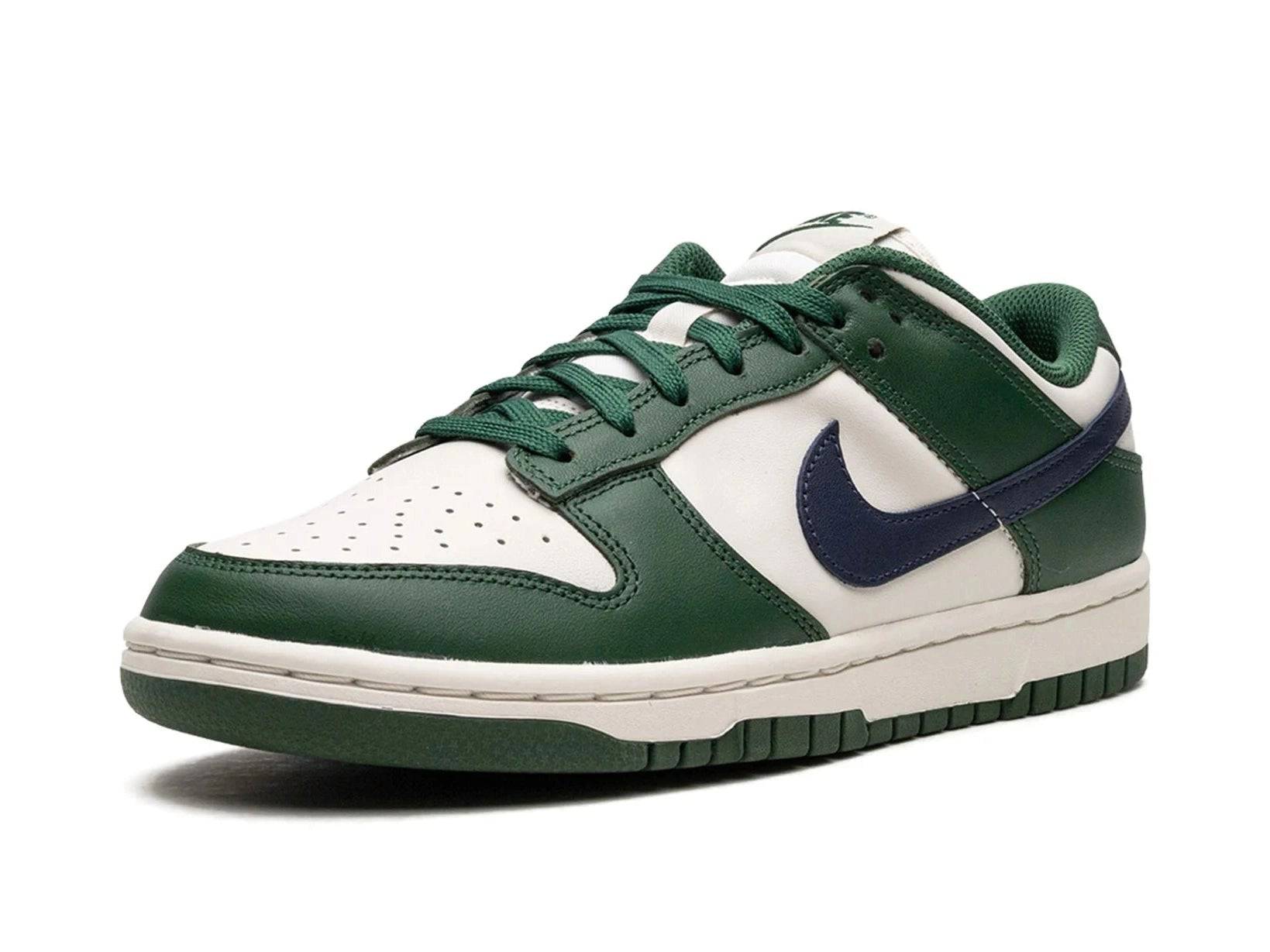 The Nike Dunk Low Gorge Green blends classic basketball vibes with a fresh street style twist. This low-top version immediately stands out with its deep green overlays contrasted against a crisp white base. The navy blue Swoosh gives it that extra edge you need to complete your fit.