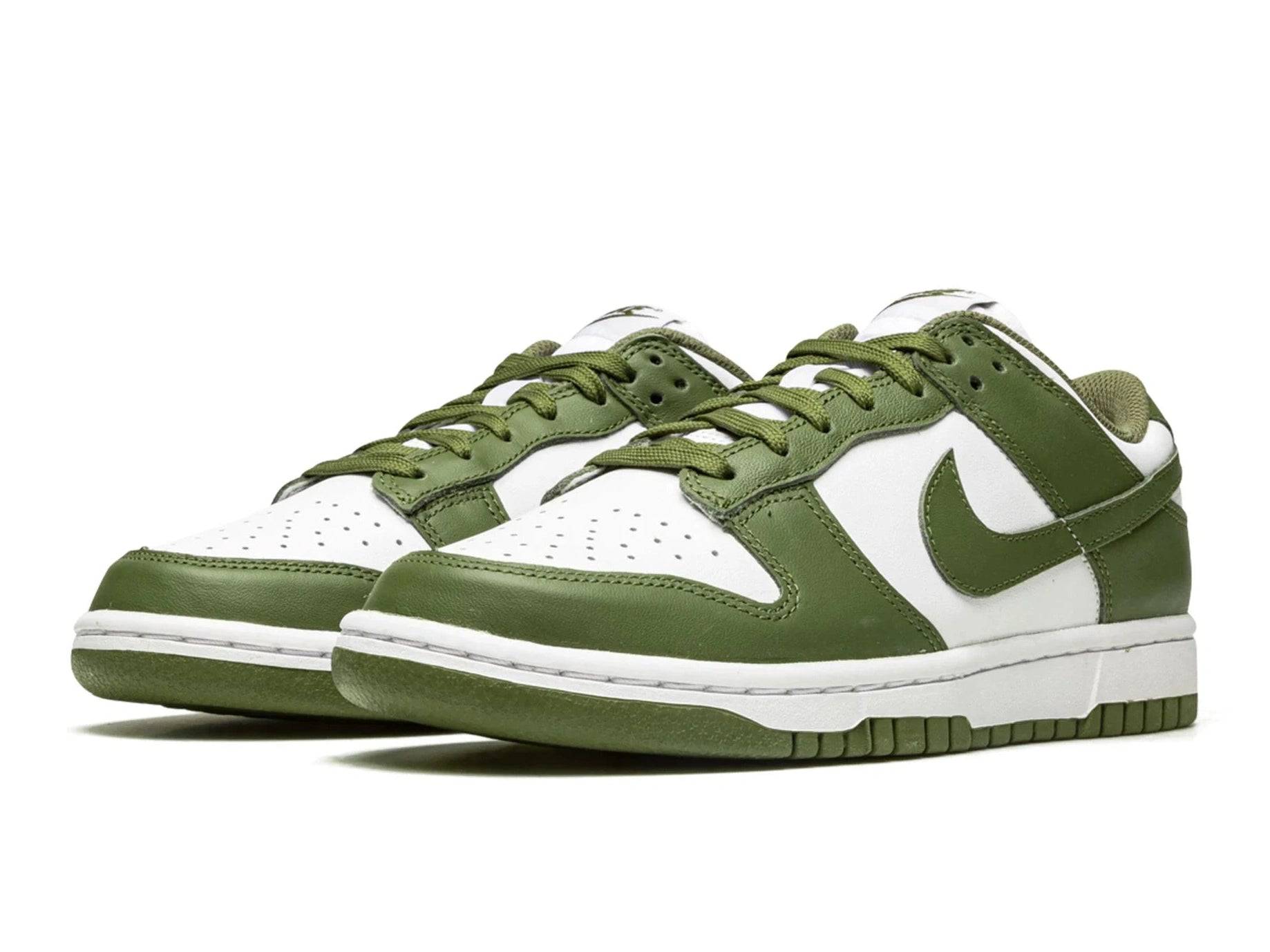 The Nike Dunk Low Medium Olive brings a fresh dose of style to your rotation with its timeless two-tone colorblocking. The deep olive green overlays contrast perfectly with the stark white of the base, making this sneaker effortlessly pair with almost any outfit. Whether you go for a casual street look or something more dressed up — this Dunk always fits.