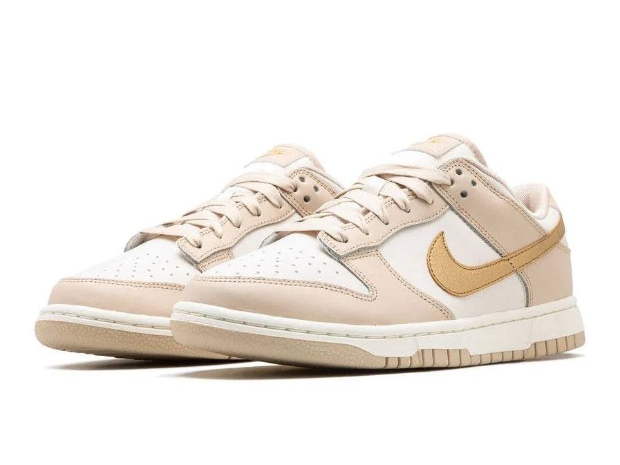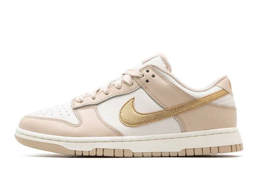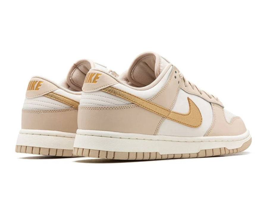 The Nike Dunk Low Phantom Metallic Gold takes minimalist luxury to the next level. This iteration mixes soft neutrals with a metallic gold Swoosh — a subtle statement for those who like finesse without going overboard. The classic silhouette delivers the instantly recognizable shape that sneakerheads have been falling for since the '80s, but this colorway gives it a fresh, modern twist.
