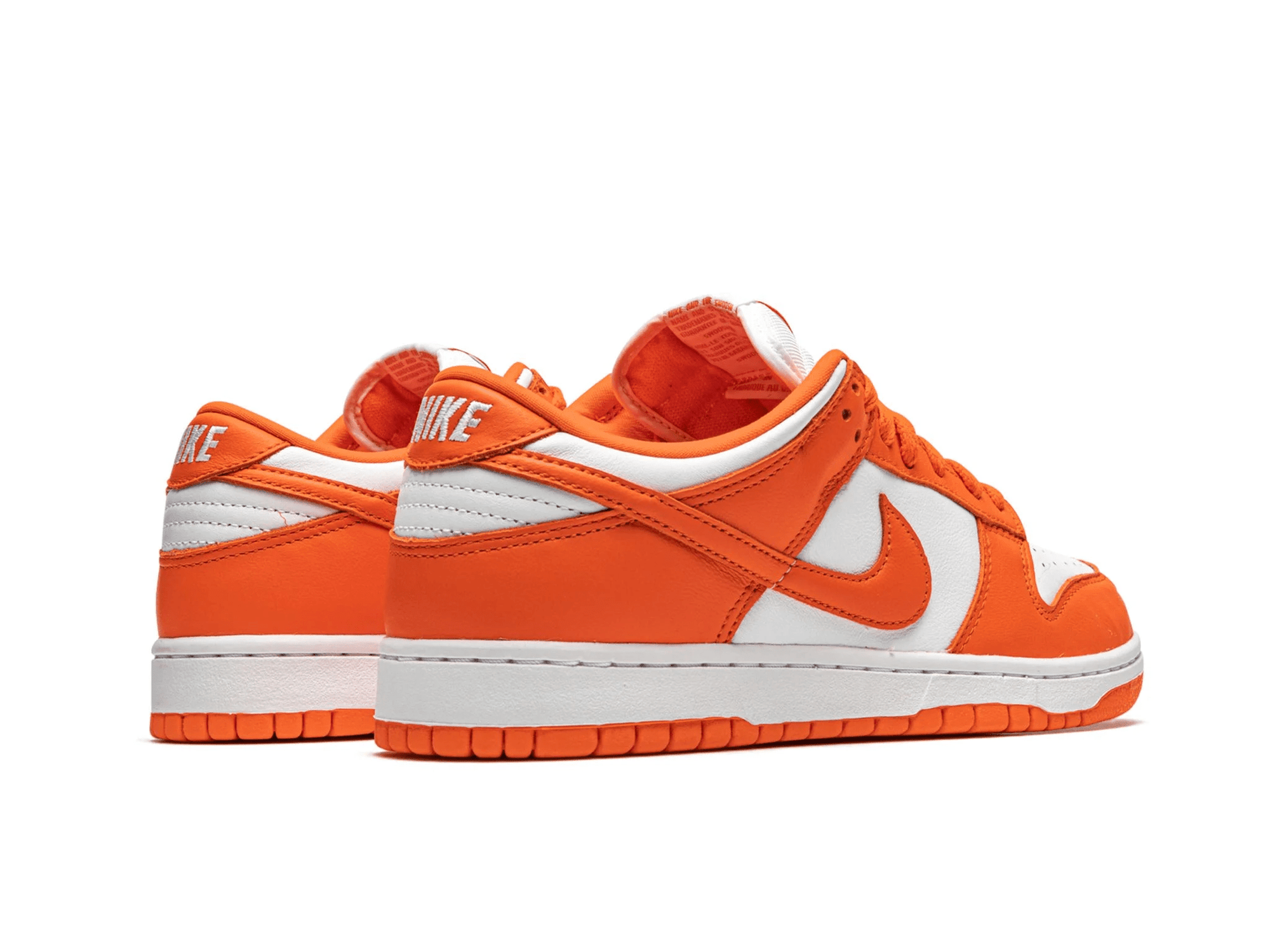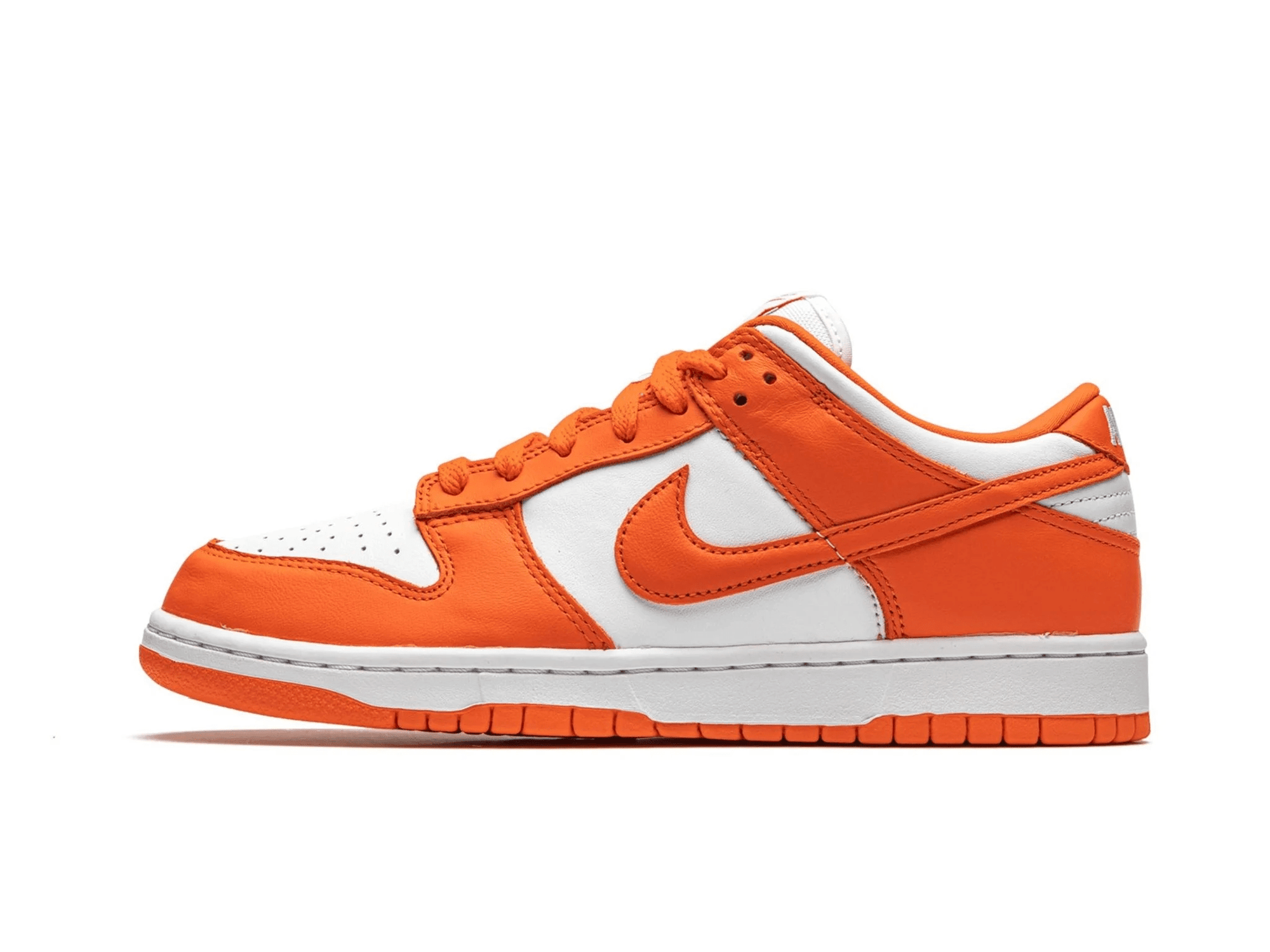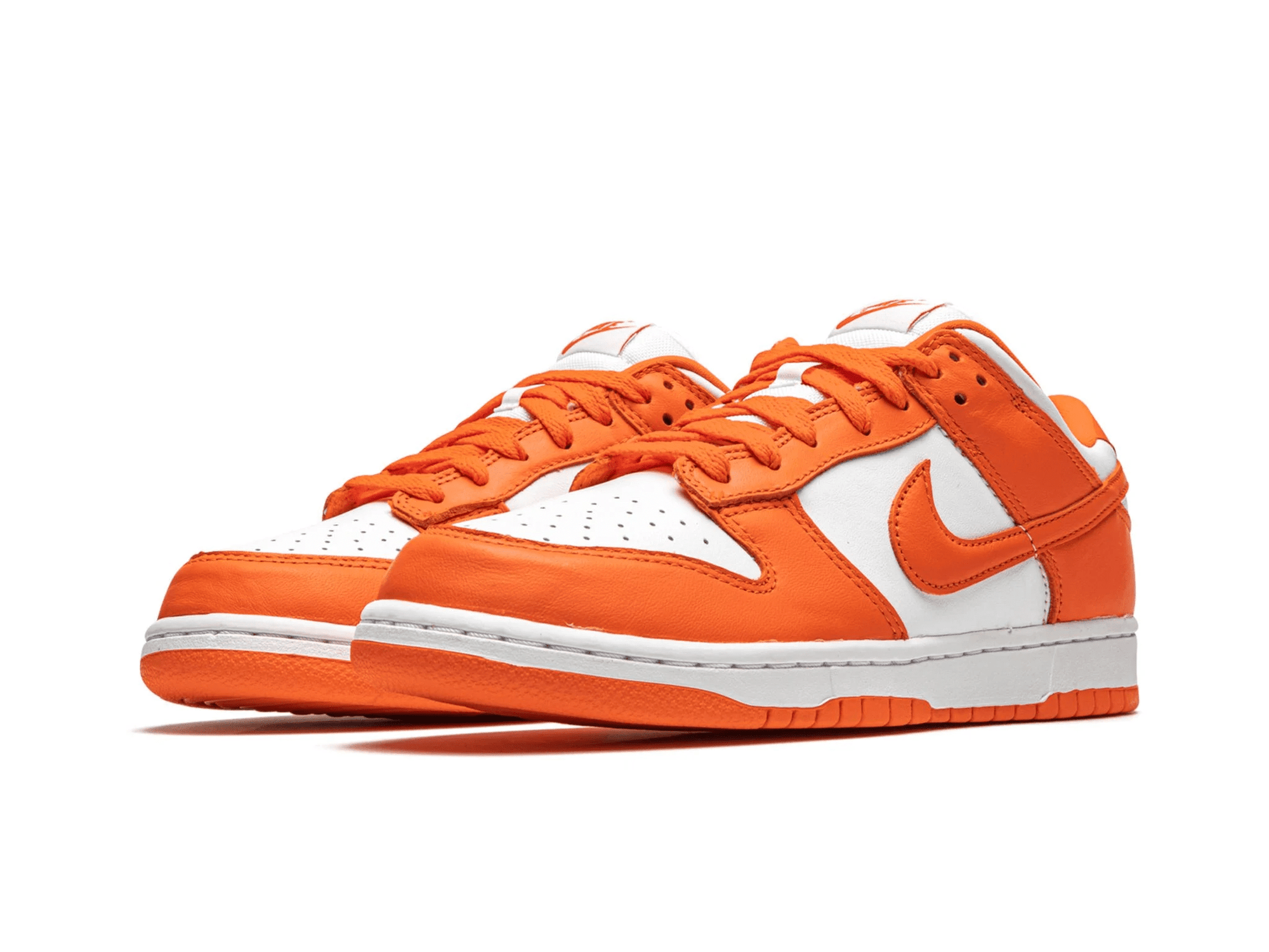 The Nike Dunk Low SP Syracuse is a retro classic that effortlessly dominates your outfit. This striking 2020 colorway honors the original 'Be True To Your School' pack from 1985, where Nike put an iconic spin on college colors. It's all about those pops of orange overlays on a clean white base—a cult-level homage to Syracuse University.