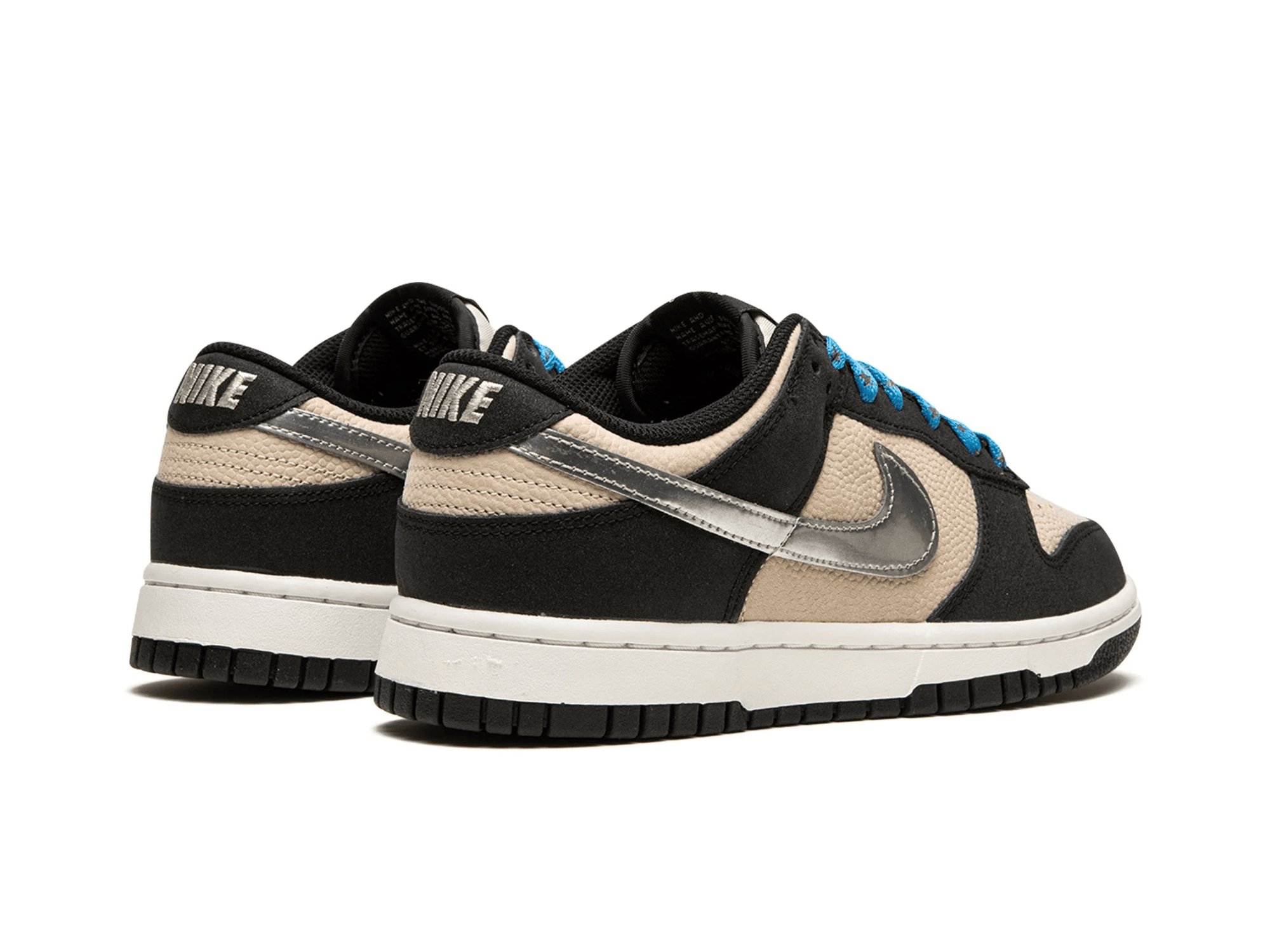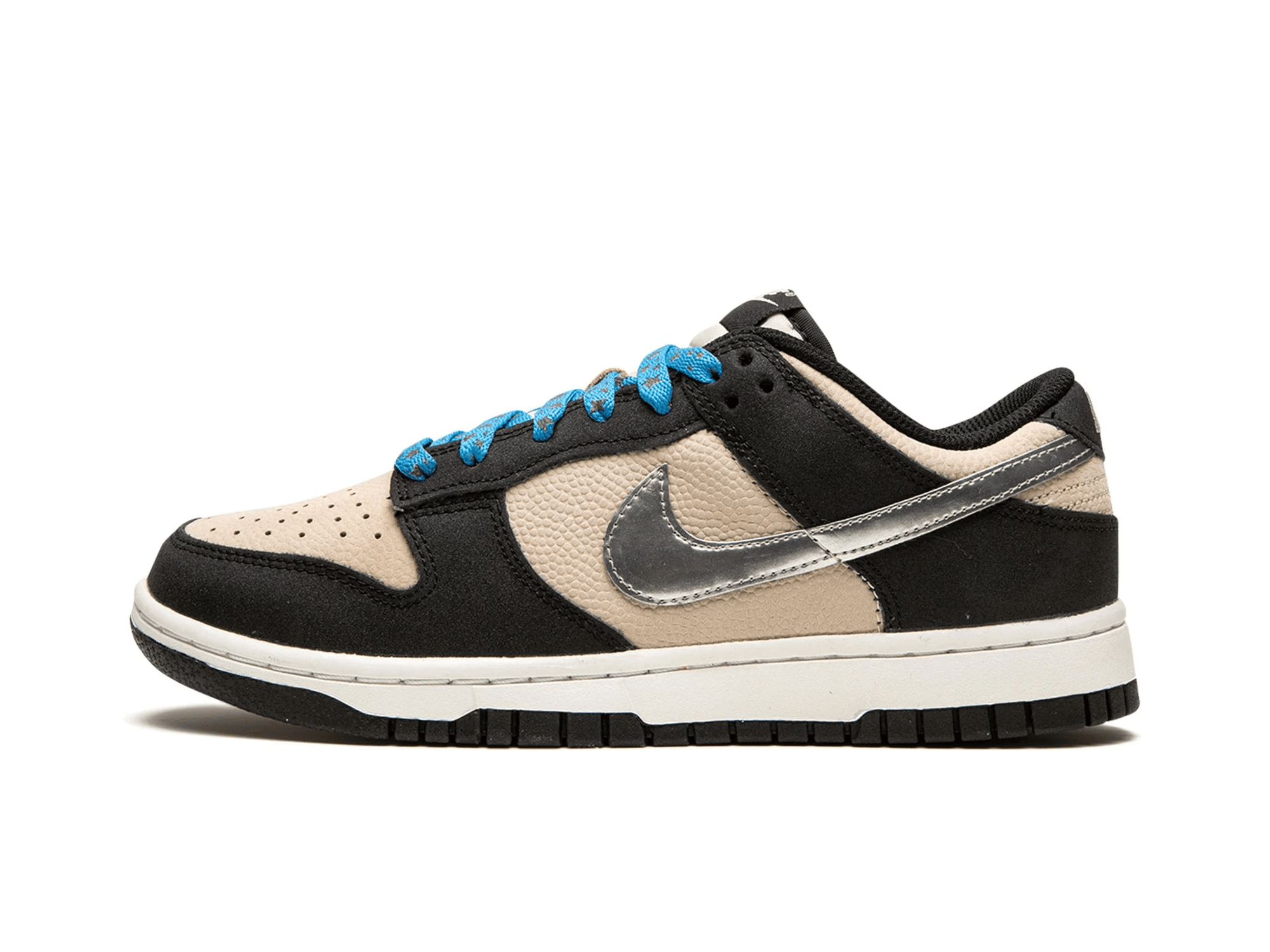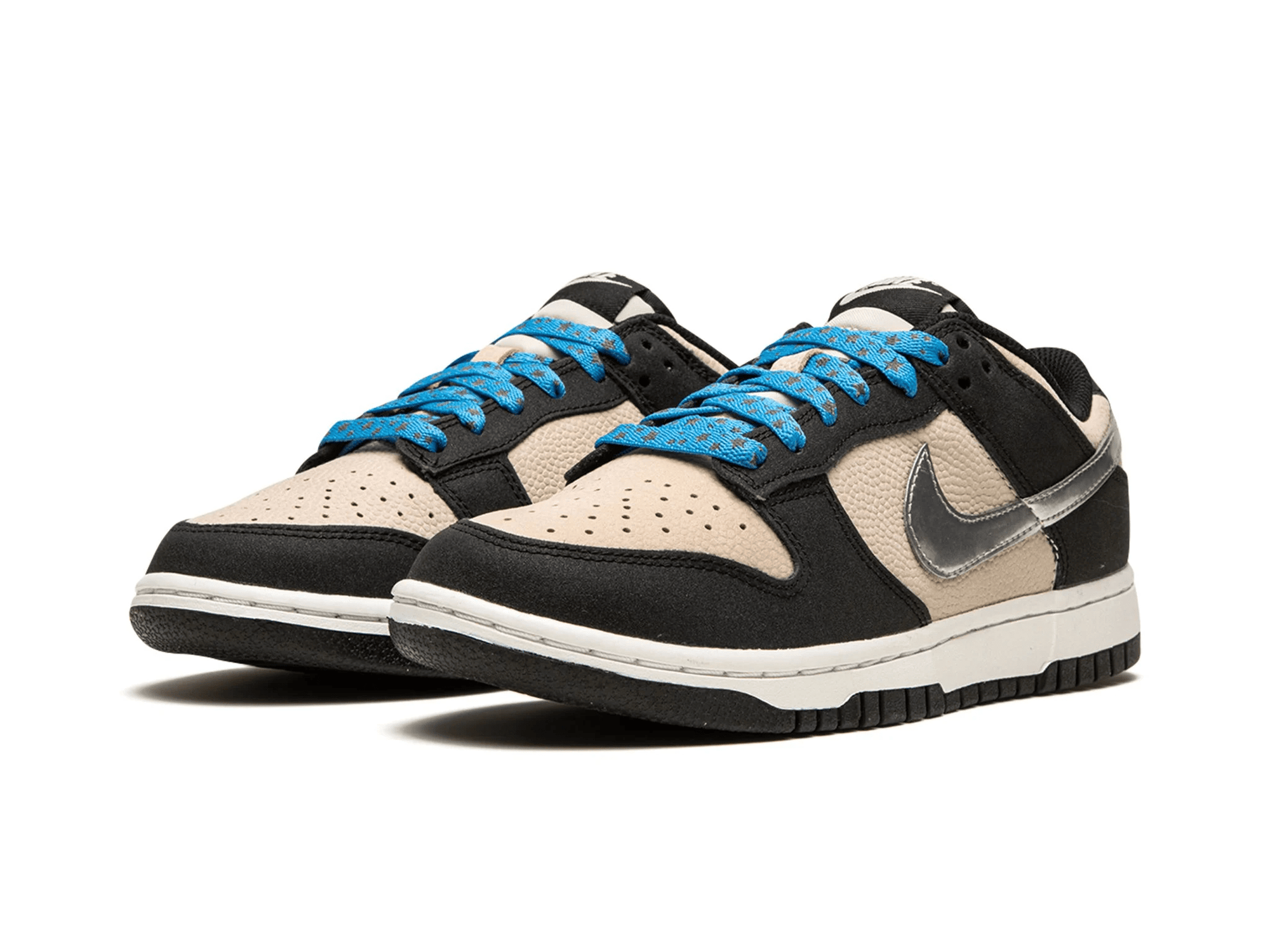 The Nike Dunk Low Starry Laces takes old-school vibes to the next level with playful details. This unique colorway mixes a sand-colored base with deep black suede overlays, perfectly embodying the Dunk's retro look. The metallic silver Swoosh logo steals the show, while the bright blue laces - inspired by a starry sky - provide a bold and quirky accent.