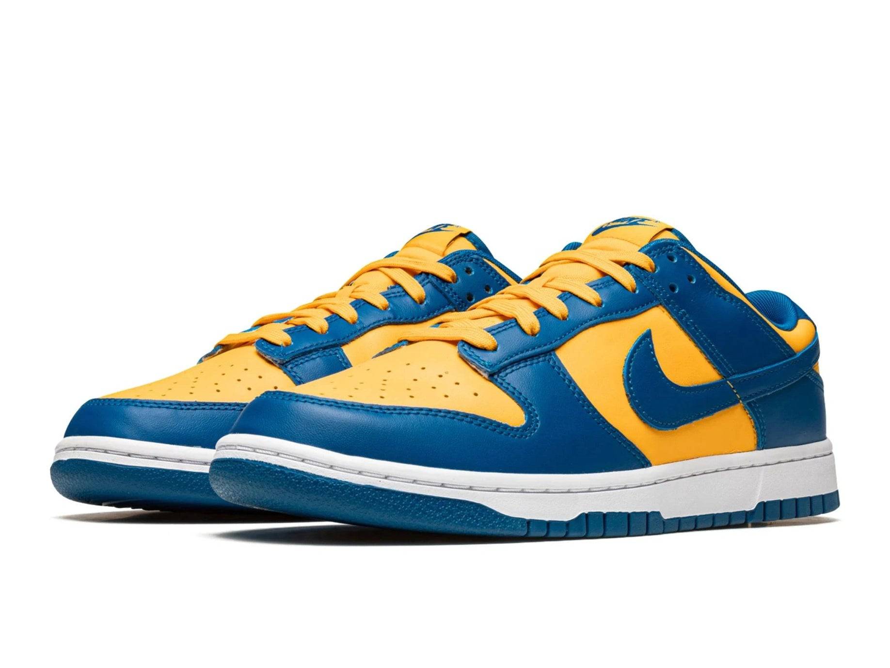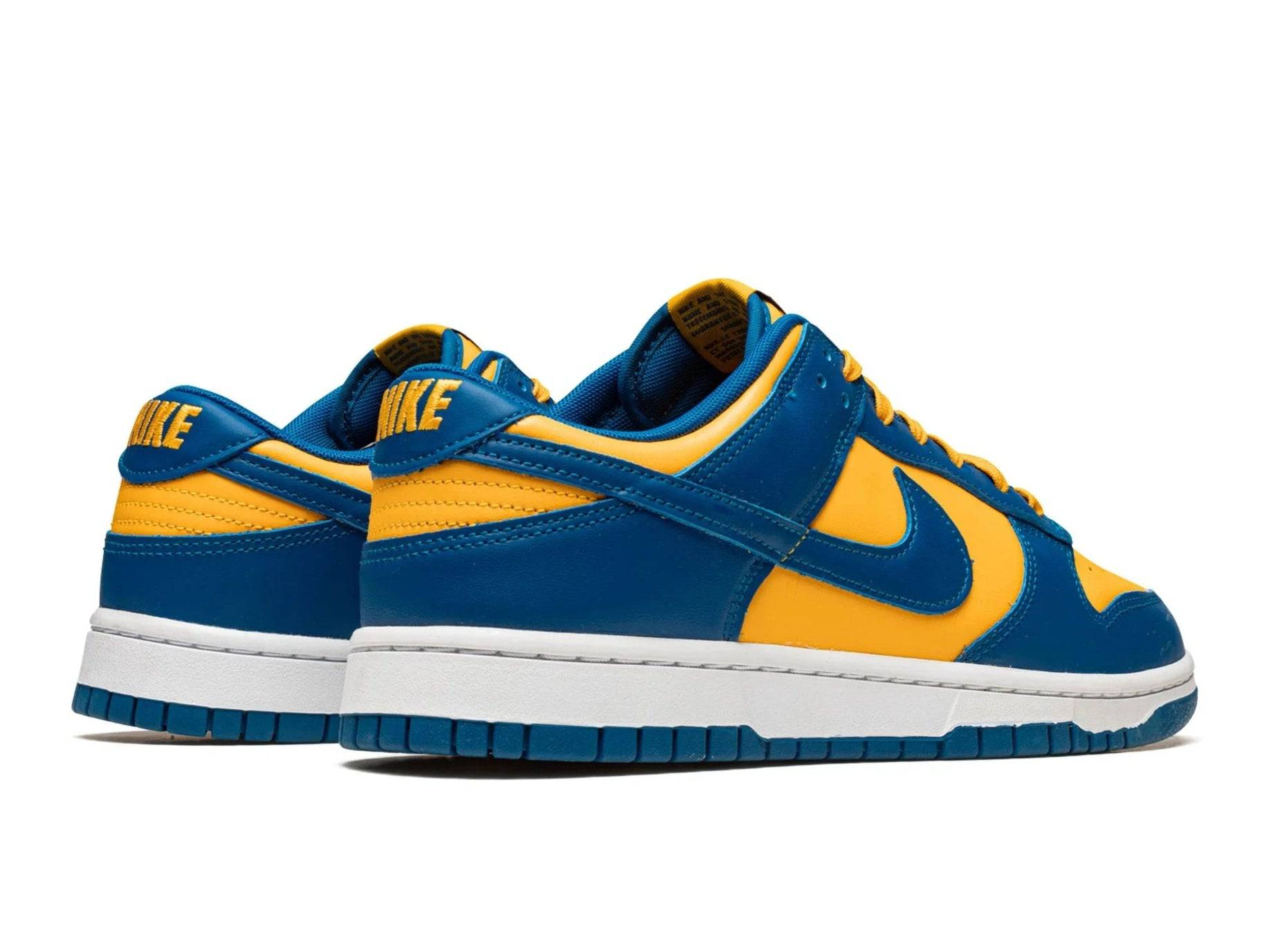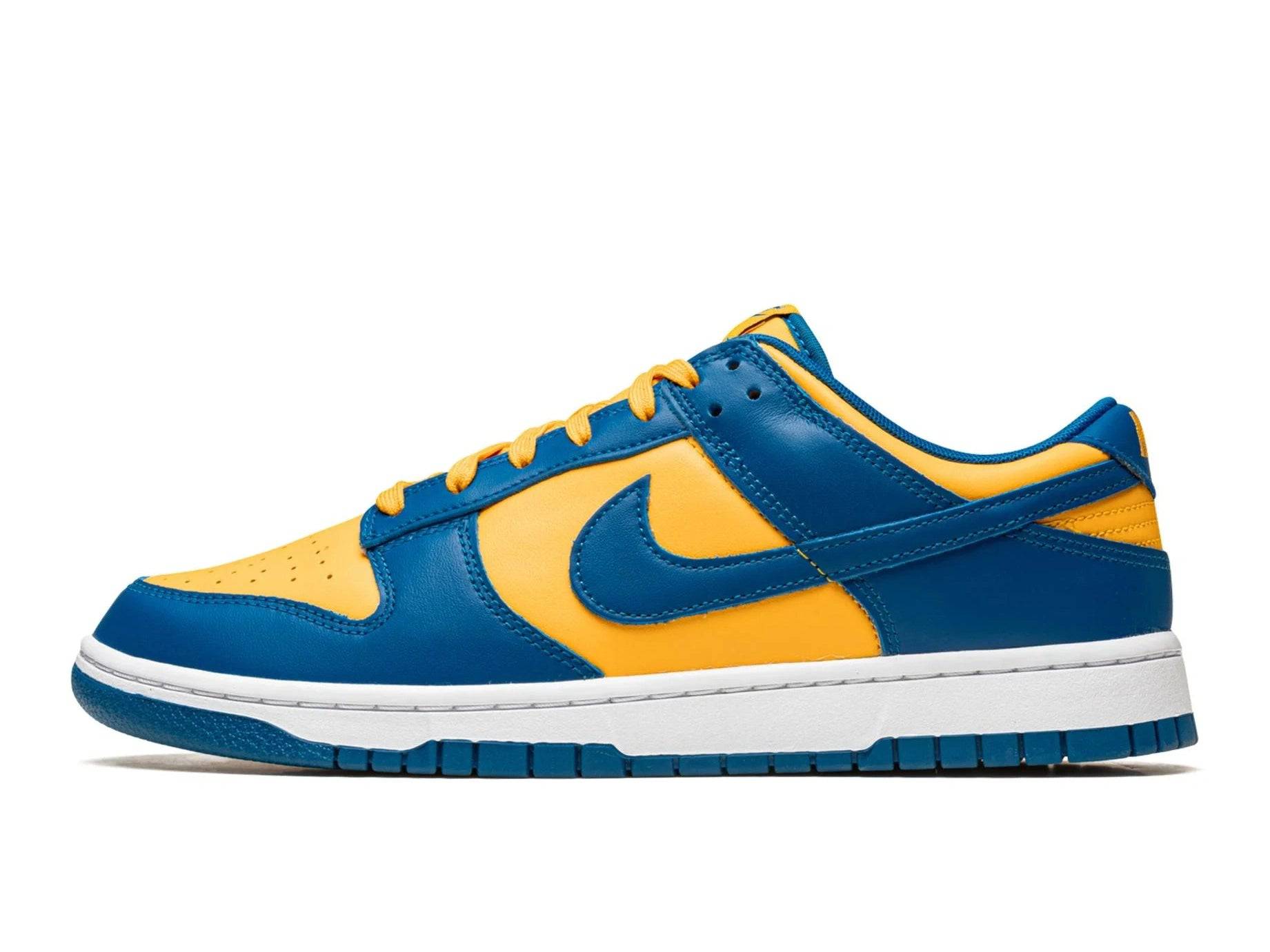 The Nike Dunk Low UCLA brings West Coast vibes to your rotation with a bold color combo that's directly inspired by UCLA's classic hues. Yellow and blue pop off the premium leather upper, while the white midsole provides a fresh balance. This Dunk isn't just an homage to college basketball—it's also a style statement for everyday wear.