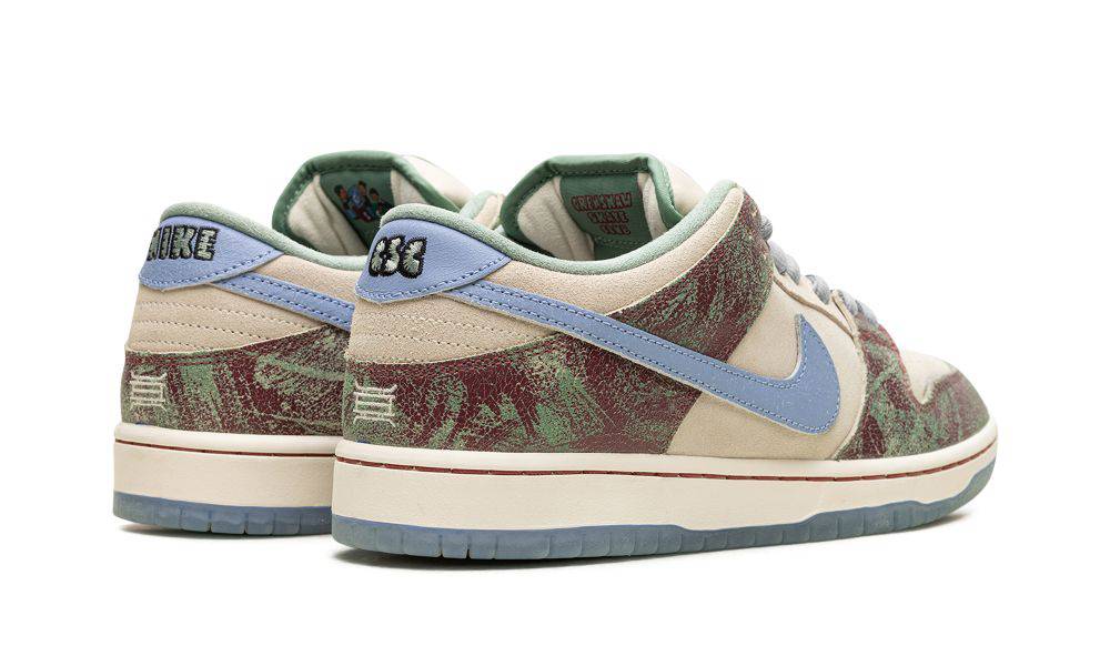 The Nike SB Dunk Low Crenshaw Skate Club is everything you want in a sneaker with soul and style. This release pays homage to the Crenshaw Skate Club collective's Los Angeles roots—and you can feel it in every detail. The soft beige suede base subtly contrasts with the unique, distressed overlays in red-green marble pattern, adding visual character to every step. The light blue Swoosh and icy sole complete the vibe—serene, yet bold.